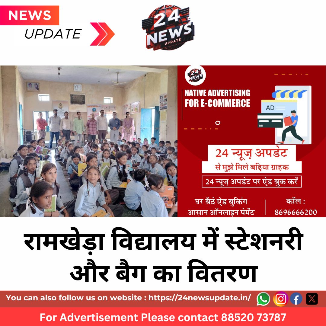 24 न्यूज अपडेट, रामाखेड़ा (भीण्डर)। राजकीय उच्च प्राथमिक विद्यालय, रामाखेड़ा में 7 अगस्त 2025 को विद्यार्थियों के बीच स्टेशनरी एवं बैग का वितरण किया गया। यह पुनीत कार्य खेरोदा निवासी समाजसेवी श्री मदनलाल बोकड़िया के सौजन्य से संपन्न हुआ, जिन्होंने विद्यालय के समस्त छात्र-छात्राओं को कॉपियाँ, पेन, पेंसिल, रबर, शार्पनर आदि सामग्री प्रदान किए।