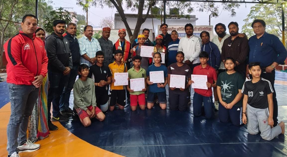 24 News Update उदयपुर। जिला कुश्ती संघ, उदयपुर द्वारा आज स्वरूप सागर स्थित श्री लक्ष्मण सिंह अर्जुन उस्ताद व्यायामशाला में राज्य स्तरीय अंडर–15 कुश्ती प्रतियोगिता के पदक विजेता पहलवानों का भव्य सम्मान समारोह आयोजित किया गया। कार्यक्रम में खिलाड़ियों, प्रशिक्षकों और खेल प्रेमियों की उपस्थिति ने आयोजन को गरिमामय बना दिया। संघ के महासचिव दीपक राजोरा ने जानकारी देते हुए बताया कि हाल ही में आयोजित राज्य स्तरीय प्रतियोगिता में उदयपुर के पहलवानों ने शानदार प्रदर्शन किया। 36 किलोग्राम वर्ग में हीना गमेती ने कांस्य पदक प्राप्त किया। फ्री स्टाइल 38 किलोग्राम वर्ग में दक्ष छिपा ने रजत पदक जीता। 48 किलोग्राम वर्ग में लक्ष्मण सिंह अर्जुन उस्ताद अखाड़े के ईशान गाछा ने रजत पदक अर्जित कर जिले का मान बढ़ाया। इस अवसर पर विजेता पहलवानों के उस्ताद यशवंत चौधरी एवं महेंद्र राजोरा को भी विशेष रूप से सम्मानित किया गया। जिला कुश्ती संघ के अध्यक्ष पारस सिंघवी ने खिलाड़ियों को हर संभव सहयोग प्रदान करने की घोषणा की। कोषाध्यक्ष धीरेंद्र सिंह सचान ने पहलवानों को कुश्ती की कॉस्ट्यूम और जूते भेंट करने की घोषणा की, वहीं राजस्थान कुश्ती संघ के उपाध्यक्ष मांगीलाल कटारिया ने खिलाड़ियों के लिए पौष्टिक खुराक उपलब्ध कराने का आश्वासन दिया।