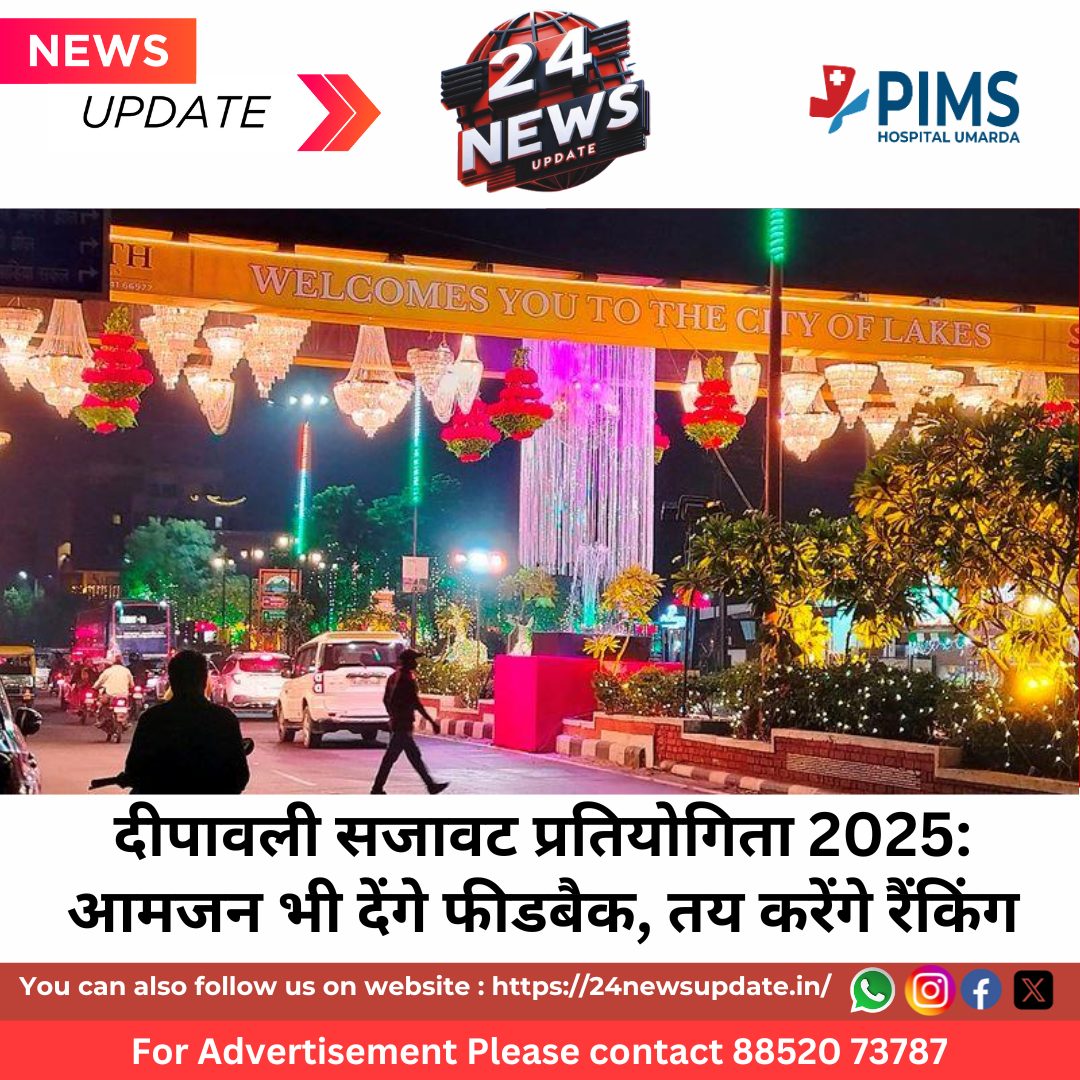 24 News Update उदयपुर। झीलों की नगरी उदयपुर में दीपावली का उत्सव इस बार और भी रंगीन होने जा रहा है। दीपावली के पावन अवसर पर 19 और 20 अक्टूबर को शहर के प्रमुख चौराहों व स्थलों पर “दीपावली स्वागत द्वार प्रतियोगिता-2025” आयोजित की जा रही है।