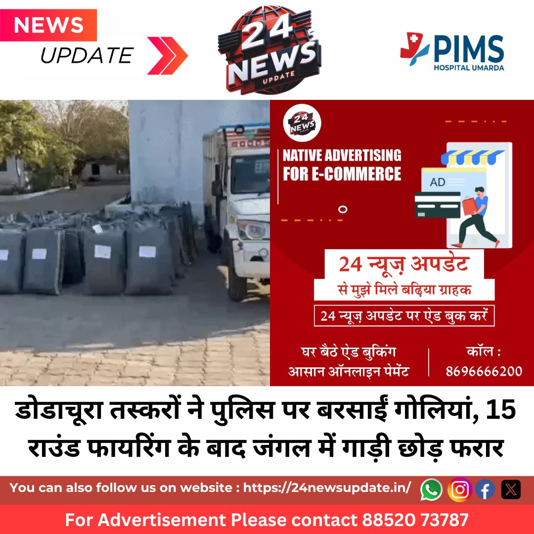 24 News Update प्रतापगढ़। जिले के धरियावद थाना क्षेत्र में मादक पदार्थ तस्करों और पुलिस के बीच देर रात मुठभेड़ जैसे हालात बन गए। पीछा कर रही पुलिस टीम पर बदमाशों ने करीब 15 राउंड फायरिंग कर दी। जवाबी कार्रवाई के बाद आरोपी पिकअप वाहन को जंगल में छोड़कर फरार हो गए। पुलिस ने मौके से एक करोड़ रुपए से अधिक कीमत का डोडाचूरा और एक जिंदा कारतूस बरामद किया है।एसपी बी. आदित्य ने बताया कि 22 मार्च को डीएसटी टीम को सूचना मिली थी कि एक संदिग्ध पिकअप वाहन धमोतर से धरियावद की ओर आ रहा है। सूचना पर थानाधिकारी हजारीलाल और डीएसटी प्रभारी प्रताप सिंह के नेतृत्व में टीम ने पाचागुड़ा स्थित एक रिसॉर्ट के पास नाकाबंदी कर दी।सोमवार तड़के करीब 4 बजे बांसी की ओर से आ रही पिकअप को रुकने का इशारा किया गया, लेकिन उसमें सवार दो युवकों ने पिस्टल दिखाते हुए नाकाबंदी तोड़ दी और वाहन को आरामपुरा के जंगल की ओर दौड़ा दिया। पुलिस ने पीछा किया तो बदमाशों ने फायरिंग शुरू कर दी। करीब 15 राउंड गोलियां चलने के बाद पुलिस ने भी जवाबी फायरिंग की, जिसके बाद आरोपी वाहन को करीब 10 किलोमीटर अंदर जंगल में छोड़कर अंधेरे का फायदा उठाते हुए फरार हो गए।घटना के बाद आरपीएस शक्ति दायमा, क्यूआरटी और डीएसटी टीमों ने इलाके में सघन तलाशी अभियान चलाया, लेकिन आरोपी हाथ नहीं लगे। पिकअप की तलाशी लेने पर उसमें 38 कट्टों में भरा 762 किलो 150 ग्राम अवैध डोडाचूरा बरामद हुआ, जिसकी अनुमानित कीमत 1 करोड़ 14 लाख 80 हजार रुपए आंकी गई है। साथ ही एक जिंदा कारतूस भी मिला है। Share this: Share on X (Opens in new window) X Share on Facebook (Opens in new window) Facebook More Email a link to a friend (Opens in new window) Email Share on WhatsApp (Opens in new window) WhatsApp Like this:Like Loading... Related Discover more from 24 News Update Subscribe to get the latest posts sent to your email. Type your email… Subscribe Post navigation जिले मे चलायी जा रही ई – बस को भीलवाड़ा से ढिकोला तक रूट जोड़ा जाए होली के रंग में सियासी संगम, सागवाड़ा में कांग्रेस ने भरी चुनावी हुंकार