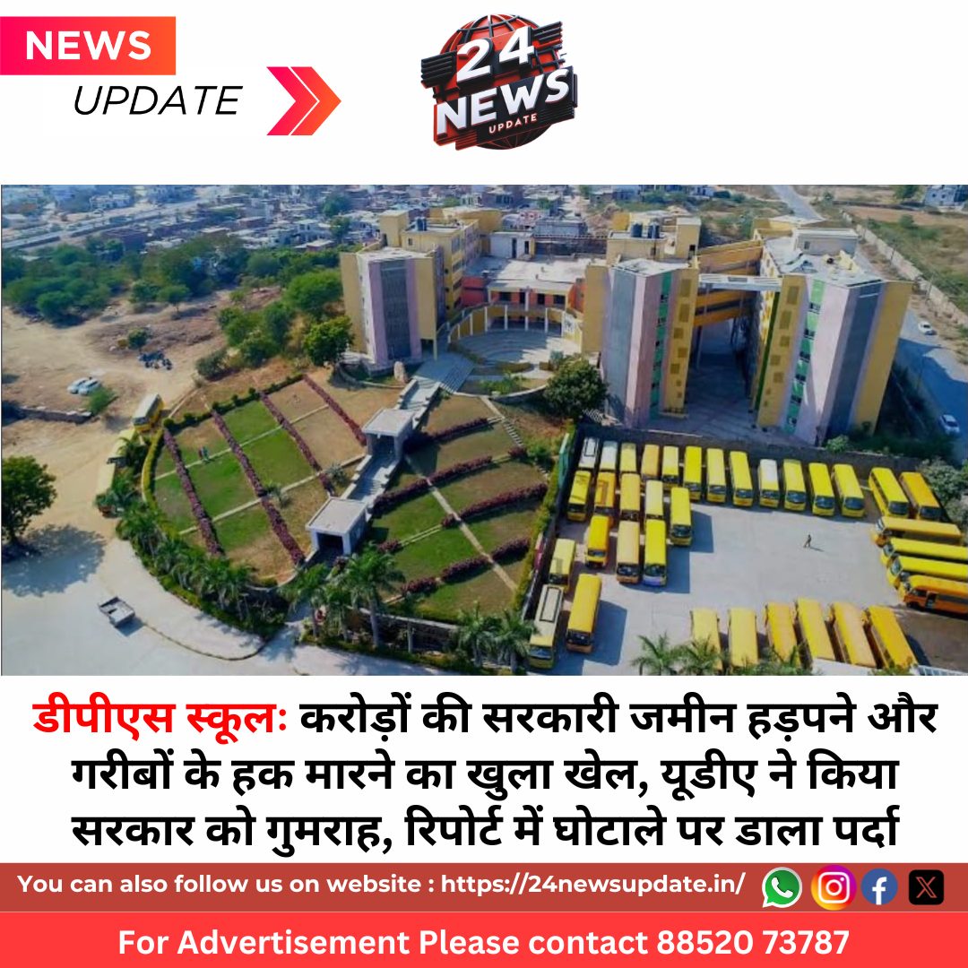 24 न्यूज अपडेट, उदयपुर। उदयपुर में डीपीएस स्कूल (दिल्ली पब्लिक स्कूल) की आड़ में करोड़ों की सरकारी जमीन को कौड़ियों के भाव हथियाने और गरीब-आदिवासी बच्चों के अधिकारों पर डाका डालने का संगीन मामला सामने आया है। पूरे खेल की सूत्रधार मंगलम सोसायटी हैं, जबकि उदयपुर विकास प्राधिकरण (यूडीए) पर आरोप है कि जांच रिपोर्ट में तथ्यों को तोड़-मरोड़कर सरकार को गुमराह किया और खुलेआम घोटाले पर पर्दा डाल दिया।
