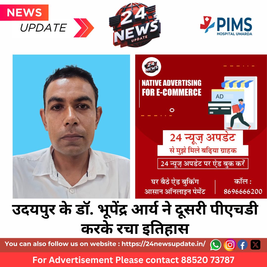 24 न्यूज अपडेट, उदयपुर। मोहनलाल सुखाड़िया विश्वविद्यालय डॉ. भूपेंद्र आर्य ने अपनी दूसरी पीएचडी उपाधि प्राप्त करके एक महत्वपूर्ण उपलब्धि हासिल कर ली हैl डॉ. भूपेंद्र आर्य ने प्रो. सुरेन्द्र कुमार कटारिया के निर्देशन में राजस्थान में उच्च शिक्षा में कार्य निष्पादन “मोहनलाल सुखाड़िया विश्वविद्यालय,उदयपुर और राजकीय मीरा कन्या महाविद्यालय,उदयपुर के तुलनात्मक और प्रशासनिक अध्ययन विषय पर अपना शोध कार्य पूरा किया है, और इस उपलब्धि के साथ ही मोहनलाल सुखाड़िया विश्वविद्यालय के सामाजिक विज्ञान संकाय से दो पीएचडी की उपाधि प्राप्त करने वाले एक मात्र शोधार्थी होने का गौरव भी हासिल कर लिया है, इससे पहले डॉ. भूपेंद्र आर्य राजनीति विज्ञान में पीएचडी की उपाधि प्राप्त कर चुके हैं, और अब लोक प्रशासन विषय में दूसरी पीएचडी की उपाधि प्राप्त करके डॉ. भूपेंद्र आर्य ने एक अनोखा रिकॉर्ड अपने नाम कर लिया है क्योंकि