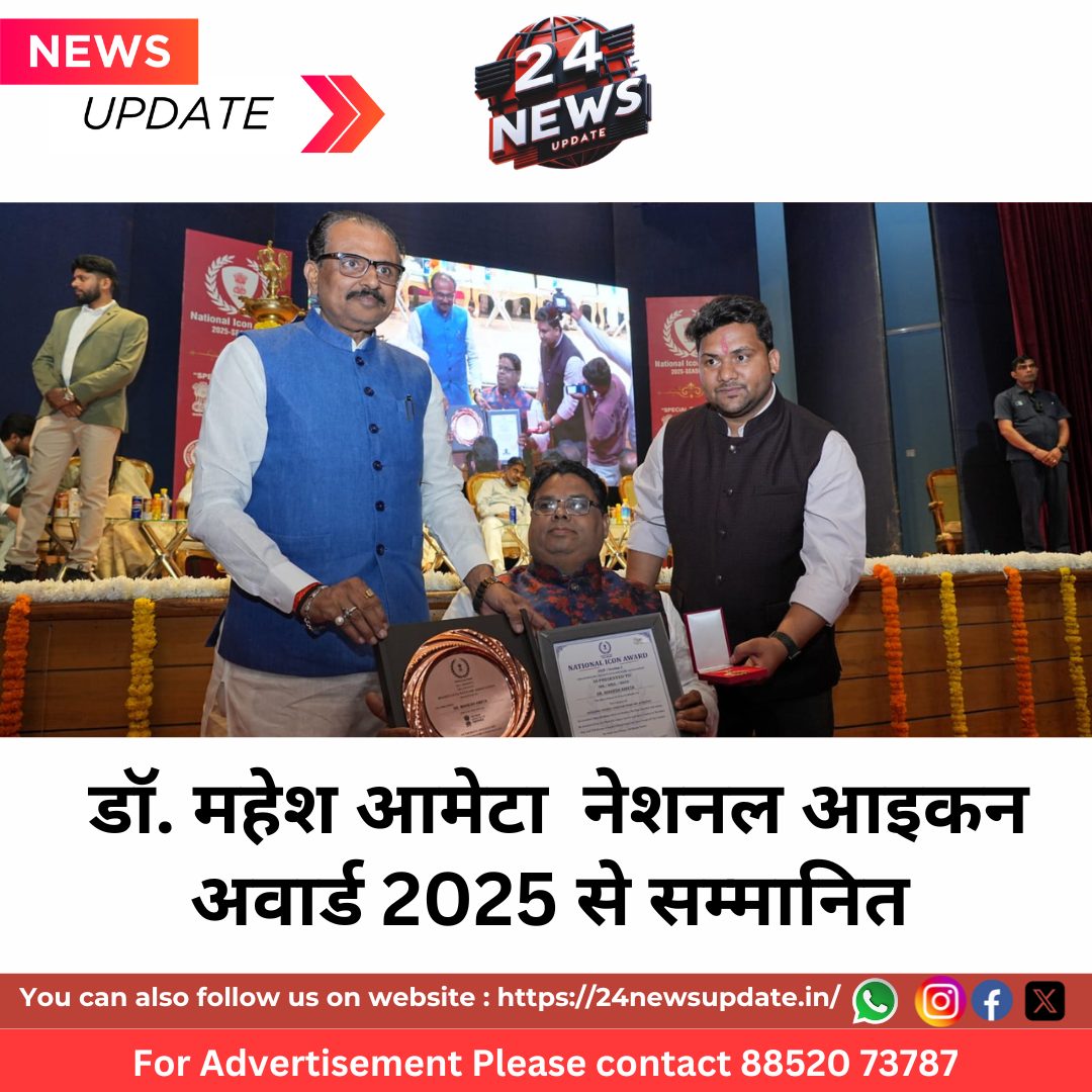 24 News Update उदयपुर 14 जुलाई / भारतीय युवा वेलफेयर एसोसिएशन, पर्यटन विभाग जम्मू कश्मीर सरकार एवं रक्षा मंत्रालय भारत नई दिल्ली की ओर से संस्कृत साहित्य वेद एवं ज्योतिष में उत्कृष्ट कार्य एवं प्रचार प्रसार के लिए राजस्थान विद्यापीठ विश्वविद्यालय के शोध सहायक डॉ. महेश आमेटा को केन्द्रीय मंत्री रामदास आठवलिया, रघुराज सिंह मिनिस्टर ऑफ लेबर एंड एंप्लॉयमेंट गवर्नमेंट ऑफ, उत्तर प्रदेश, सतीश चंद्र , फार्मर बेसिक एजुकेशन मिनिस्टर ऑफ गवर्नमेंट, उत्तर प्रदेश ने प्रधानमंत्री संग्रहालय, तीन मूर्ति मार्ग, न्यू दिल्ली में आयोजित समारोह में नेशनल आइकन अवार्ड 2025 से नवाजा गया। कुलपति प्रो. शिवसिंह सारंगदेवोत ने डॉ. आमेटा को बधाई देते हुए कहा कि राष्ट्रीय स्तर पर सम्मान मिलना संस्थान के लिए गौरव की बात है।