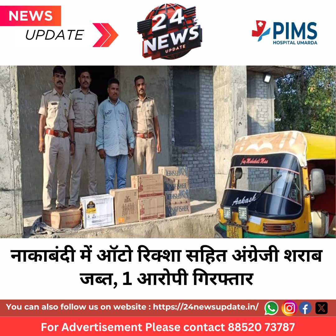 नाकाबंदी के दौरान पुलिस ने एक टेम्पो रिक्शा को रोककर तलाशी ली। इसके दौरान 2 कार्टून बीयर, 4 कार्टून अंग्रेजी शराब और 40 खुल्ले पव्वे बरामद किए गए। टेम्पो चालक आशीष, पिता हुरमा, निवासी उखेडी मालीफला, थाना पाटीया को गिरफ्तार कर प्रकरण संख्या 121/2025 के तहत धारा 19/54 राजस्थान आबकारी अधिनियम 1950 में मामला दर्ज किया गया है। अग्रिम अनुसंधान जारी है।