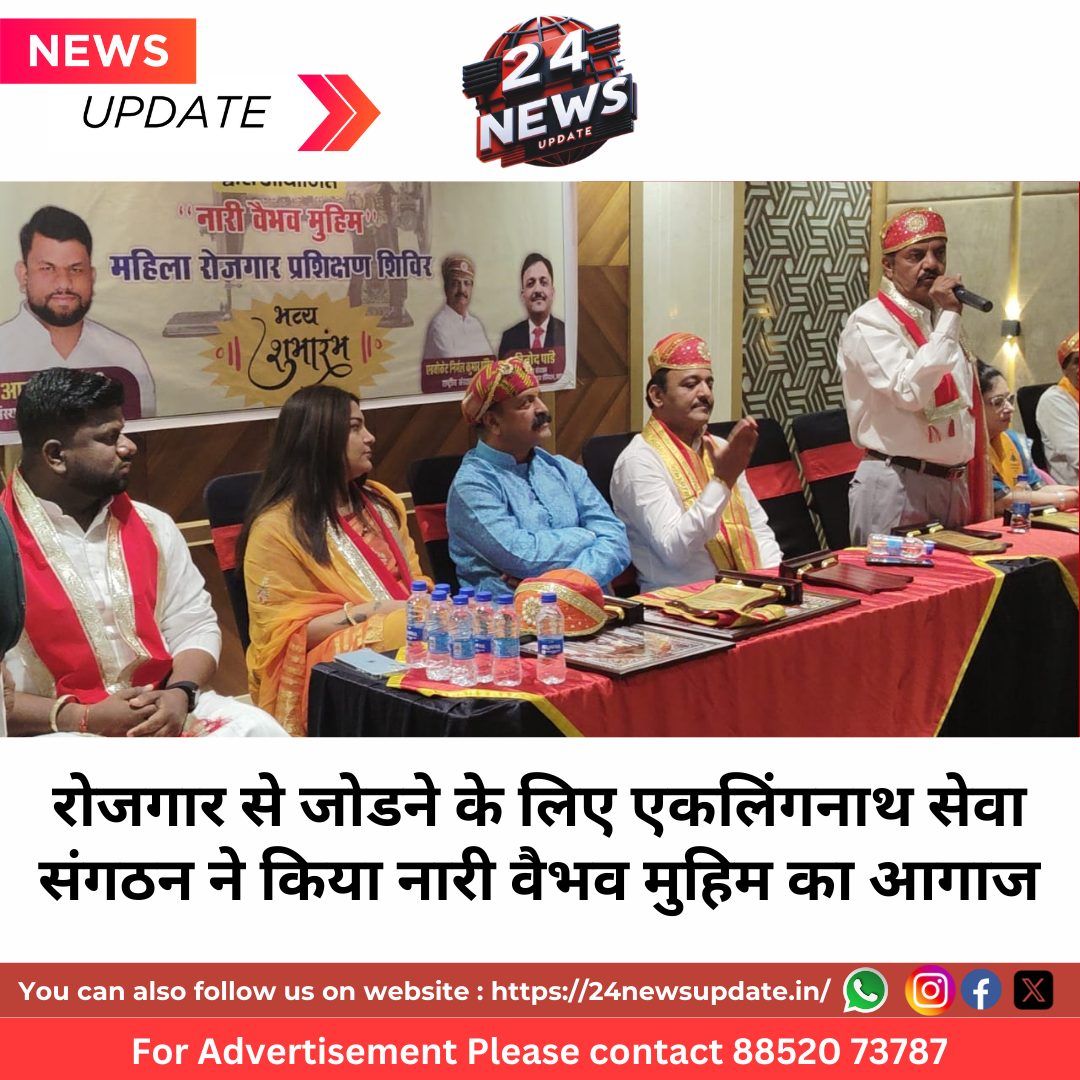 24 न्यूज़ अपडेट उदयपुर। श्री एकलिंगनाथ सेवा संगठन ने शनिवार को नारी वैभव मुहिम का आगाज करते हुए 100 महिलाओं को रोजगार प्रशिक्षण शिविर से जोडने का अभिनव काम शुरु किया। होटल डी जगत में आयोजित एक भव्य समारोह में नारी वैभव मुहिम का आगाज हुआ। इस मौके पर बडी संख्या में शहरी व ग्रामीण महिलाएं शामिल हुईं।
