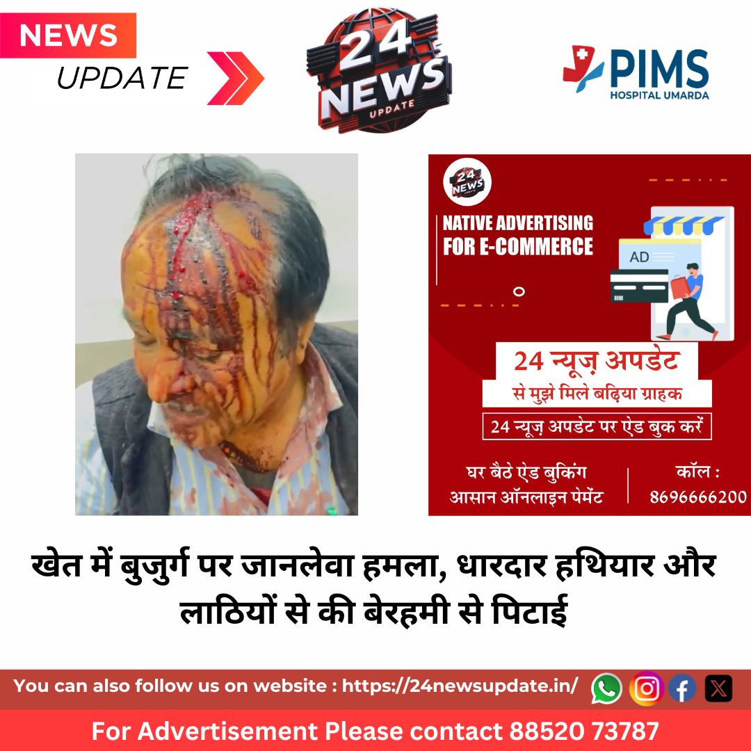 24 News Update उदयपुर। जिले के खेरोदा थाना क्षेत्र के मेनपुरिया गांव में एक बुजुर्ग पर जानलेवा हमले का सनसनीखेज मामला सामने आया है। पीड़ित सुरेश चन्द्र चौबीसा (64) ने गांव के ही दो व्यक्तियों के खिलाफ खेत में घुसकर धारदार हथियार और लाठियों से मारपीट करने की रिपोर्ट दर्ज कराई है। पीड़ित के अनुसार, मंगलवार शाम करीब 5 बजे वह अपने खेत पर काम कर रहे थे। इसी दौरान गांव के देव किशन चौबीसा और उनका पुत्र निर्मल चौबीसा हाथों में लाठी और धारदार ‘कुट’ लेकर वहां पहुंचे। आरोप है कि दोनों ने जान से मारने की धमकी देते हुए उन पर ताबड़तोड़ हमला कर दिया। निर्मल चौबीसा ने धारदार हथियार से वार किए, जिससे सुरेश चन्द्र के सिर, दोनों हाथों के अंगूठों और पैरों पर गंभीर चोटें आईं। वहीं देव किशन ने लाठियों से बेरहमी से पिटाई की। हमले के बाद दोनों आरोपी बुजुर्ग को मरणासन्न हालत में छोड़कर मौके से फरार हो गए। पीड़ित ने पुलिस को दी तहरीर में बताया कि हमले में शरीर के कई हिस्सों में फ्रैक्चर होने की आशंका है। फिलहाल पुलिस को रिपोर्ट सौंप दी गई है और आरोपियों के खिलाफ सख्त कानूनी कार्रवाई के साथ मेडिकल परीक्षण कराने की मांग की गई है। Share this: Share on X (Opens in new window) X Share on Facebook (Opens in new window) Facebook More Email a link to a friend (Opens in new window) Email Share on WhatsApp (Opens in new window) WhatsApp Like this:Like Loading... Related Discover more from 24 News Update Subscribe to get the latest posts sent to your email. Type your email… Subscribe Post navigation सफलता के लिए अप्रासंगिक कौशल त्यागकर नए कौशल अपनाना समय की मांग” — प्रो. सारंगदेवोत कुएं में गिरा पैंथर, रेस्क्यू ऑपरेशन जारी