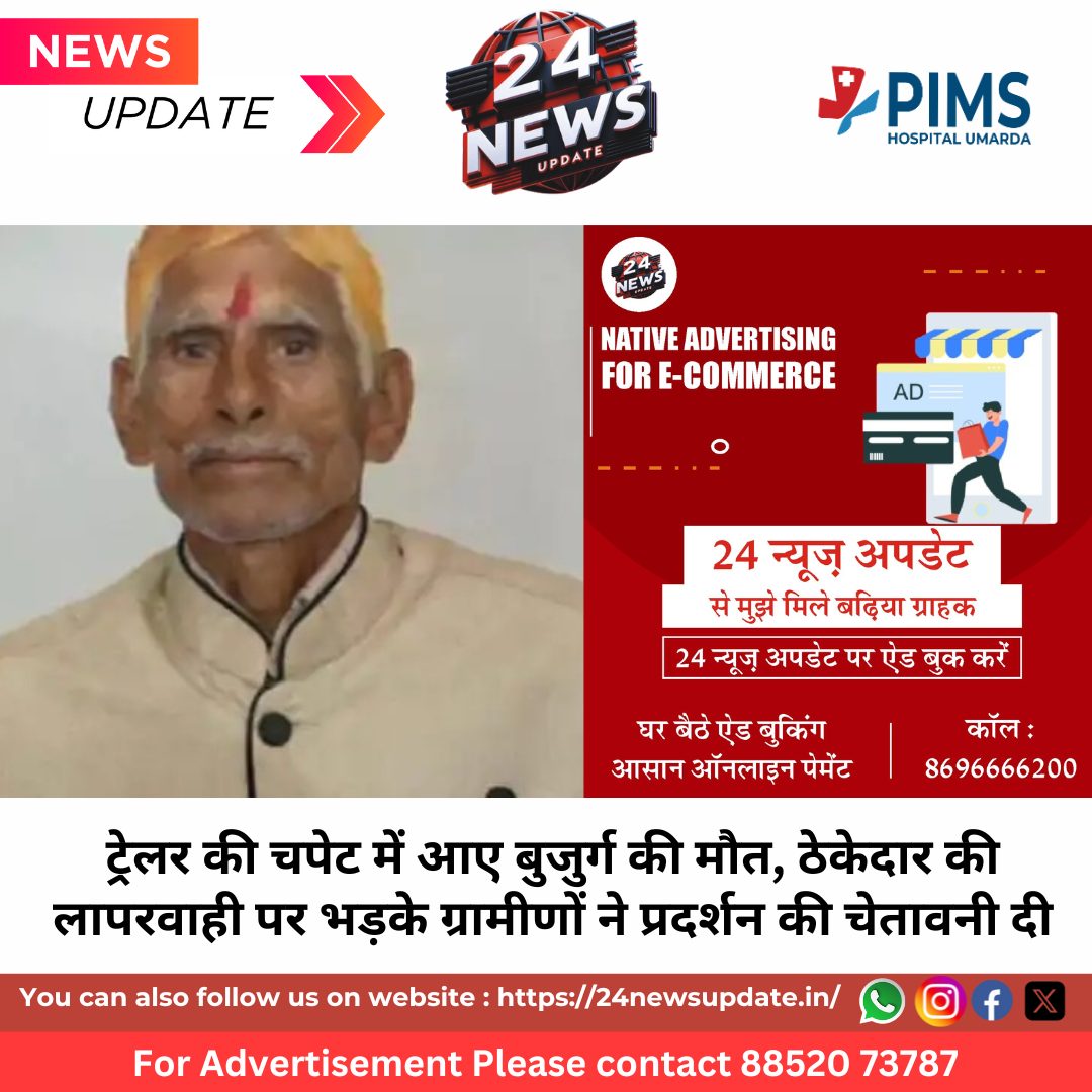 24 न्यूज अपडेट, उदयपुर। उदयपुर-पिंडवाड़ा हाईवे पर सोमवार को एक और दर्दनाक हादसा हो गया। तेज रफ्तार ट्रेलर ने स्कूटी सवार बुजुर्ग को कुचल दिया, जिससे उनकी मौके पर ही मौत हो गई। हादसे के बाद आक्रोशित ग्रामीणों ने हाईवे निर्माण कार्य में लगी ठेकेदार कंपनी पर गंभीर लापरवाही का आरोप लगाते हुए चेतावनी दी कि यदि जल्द ही सड़क दुरुस्त नहीं की गई, तो वे उग्र आंदोलन करेंगे।