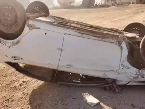 चार पलटियों में चकनाचूर हुई कार