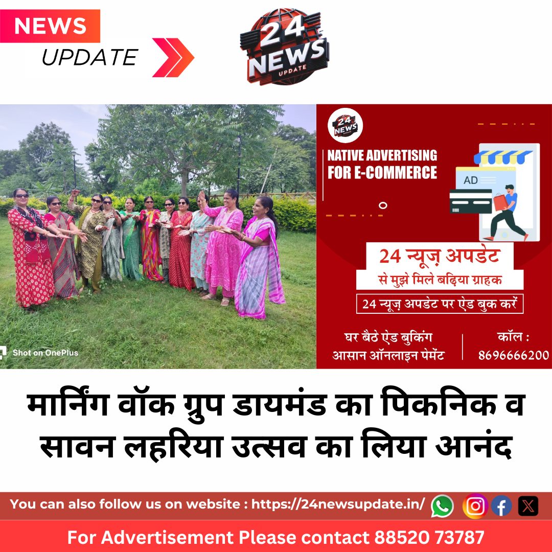 24 News Update उदयपुर। मॉर्निंग वॉक ग्रुप डायमंड उदयपुर ने श्री वेवर महादेव परिसर में पिकनिक का भरपूर आनंद लिया। संयोजक नरेश पूर्बिया ने बताया कि सावन माह में सभी ने महादेव को पुजा अर्चना कर जलाभिषेक किया।कल कल बहती नदी में तैरने का खुब आनंद लिया। महिलाओं ने सावन उत्सव लहरिया के साथ मनाया। भोलेनाथ के दरबार में भक्ति गीतों की खुब सरिता बही। सांवरिया सेठ दे दे,तारो भरयो भंडार।कम न पड़े, छोटी छोटी गईया छोटों सो मदन गोपाल,हट मत पकड़ो पार्वती,थने भम भोलो परणवा आवे लो । जैसे कई भजनों से सावन उत्सव खुशनुमा बना दिया। कार्यक्रम में मधुबाला नरेश पूर्बिया, उर्मिला दिलीप अग्रवाल,मधु डी पी लक्षकार, मंजू श्याम भोई, किरण बाला जगदीश वैष्णव, मंजू भूपेंद्र मादावत, श्यामा नर्बदा शंकर चौबीसा,देवी लाल डाबरिया, रूक्मणी अवधेश शर्मा,वेलू देवी लाल पटेल, किरण बाला मुकेश जैन सहित कई सदस्य उपस्थित थे।