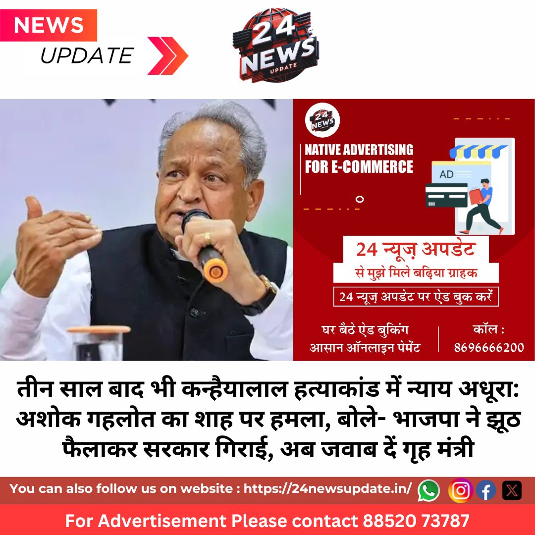24 News Update जयपुर। पूर्व मुख्यमंत्री अशोक गहलोत ने केंद्रीय गृह मंत्री अमित शाह के जयपुर दौरे के बीच कन्हैयालाल टेलर मर्डर केस में एनआईए जांच में देरी और परिवार को अब तक न्याय नहीं मिलने को लेकर गंभीर सवाल उठाए हैं। गहलोत ने आरोप लगाया कि भाजपा ने इस जघन्य हत्याकांड को चुनावी हथियार बनाकर झूठ फैलाया और कांग्रेस सरकार को सत्ता से बेदखल कराने में इस मामले का बड़ा हाथ रहा।
