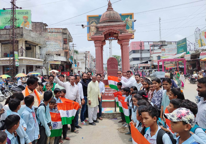 कार्यक्रम प्रभारी जीतेन्द्र कुमार शर्मा ने बतलाया कि चौराहे पऱ रंगोली गुरुकुल महाविद्यालय की छात्राओं मोनिका पाटीदार, नीलम डामोर, भाविका डामोर, पल्लवी रोत, मोनिका रोत, शिल्पा मोर, निशा खराडी, भूमिका अहारी, आरती पाटीदार, श्वेता यादव, भारती डोडीयार ने पूर्वा भाटिया एवं शैलेश सुथार के नेतृत्व मे एवं पालिका कार्यालय मे रंगोली सफाईकर्मी ट्विंकल हरिजन जया हरिजन, एवं पालिका ठेकाकार्मिको द्वारा बनाई गई। इस अवसर पऱ पार्षद एवंहर घर तिरंगा – हर घर स्वच्छता कार्यक्रम के अध्यक्ष हरिशचंद्र सोमपुरा, पार्षद श्रीमती रेखा कटारा ,कार्यक्रम सहायक प्रभारी दिलीप पाटीदार सहित महिपाल विद्यालय के छात्र एवं छात्राऐं उपस्थित रहे।