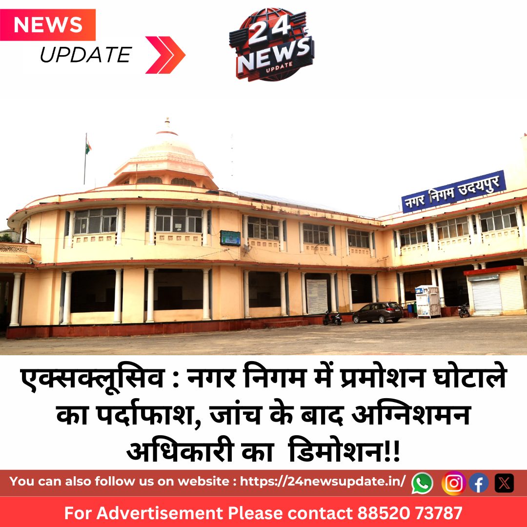 24 न्यूज अपडेट उदयपुर। वैसे तो हम रोज ही सुबह घर पर आने वाली कचरा संग्रहण गाड़ी पर सुनते हैं कि नगर निगम उदयपुर की शान पुरानी है लेकिन इस शान में हर बार नए चार चांद लगाने कोई ना कोई घोटाला या महाघोटाला सामने आ ही जाता है। पहले 272 प्लॉट प्रकरण सहित अन्य प्रकरणों में निगम की किरकिरी हुई तो अब पदोन्नति घोटाला सामने आने के बाद कार्यालय उप निदेशक क्षेत्रीय स्थानीय निकाय विभाग उदयपुर की कृपा से निगम की छवि धूल में मिलती हुई दिखाई दे रही है। नगर निगम उदयपुर में टिण्डल से सहायक अग्निशमन अधिकारी के पद पर की गई पदोन्नति में बड़ा घोटाला सामने आया है। इसमें एक ऐसे पद पर पदोन्नति कर दी गई जो अस्तित्व में ही नहीं था। उस पर शिकायत हुई तो चार साल तक सरकारी लवाजमा राजनेताओं की वरद हस्त के चलते चुप बैठा रहा व जांच-जांच का खेल खेलता रहा। अब जाकर जब मामले में कार्रवाई हुई है तो कई चौंकाने वाली बातें सामने आई है। इस मामले में अब पदावनित की अनुशंसा की गई है। केवल डिमोशन से ही काम चल जाएगा या फिर असली गुनहकार कभी सामने आएंगे व अपनी करतूत का पनिशमेंट पाएंगे, यह अभी कहना मुश्किल है मगर यह तो तय है कि असली गुनहगारों को बचाने के भरपूर प्रयास अभी से शुरू हो गए हैं। इस मामले में पदोन्नति करने वाले से लेकर जांच करने वाले, जांच को धीमी चलाने वालों तक पर कब कार्रवाई शुरू होगी यह देखने वाली बात होगी। इस प्रकरण ने नगर निगम सहित अन्य निकायों में हुई अन्य भर्तियों और पदोन्नतियों पर भी संदेह पैदा कर दिया है। क्या अन्य भर्तियों में भी इसी प्रकार की अनियमितताएं हुई हैं? क्या इन भर्तियों में भी बड़े स्तर पर गड़बड़ी और मिलीभगत का खेल हुआ है? क्या इस पूरे मामले की गहराई से जांच की जाएगी? यह सवाल भी अब उठ रहे हैं।