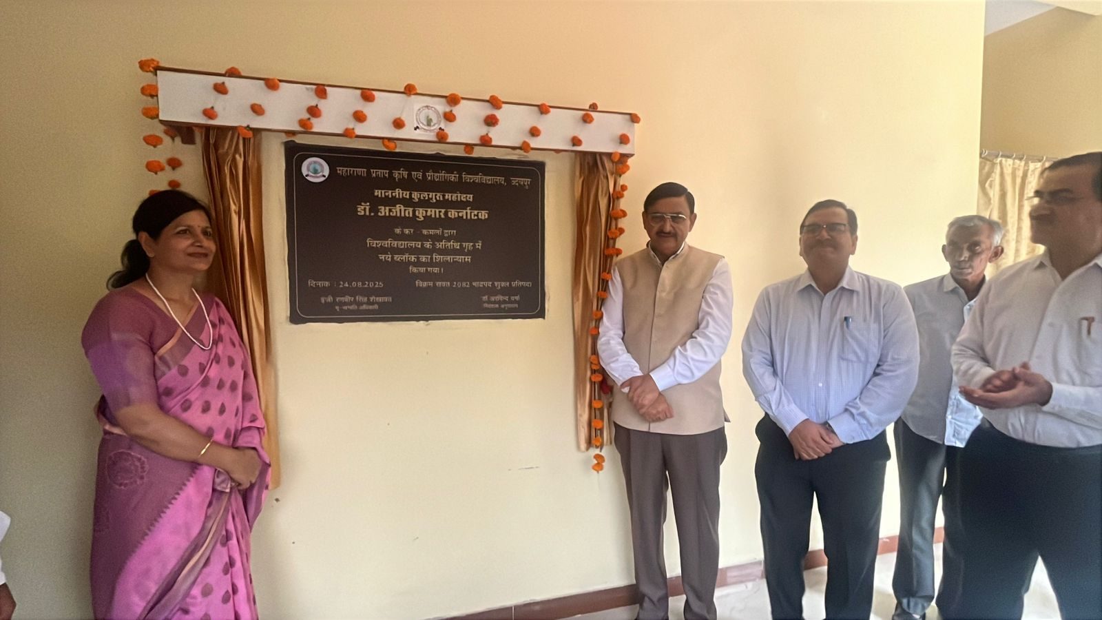 24 News update उदयपुर, 24 अगस्त। महाराणा प्रताप कृषि एवं प्रौद्योगिकी विश्वविद्यालय (एमपीयूएटी) के गेस्ट हाउस को और अधिक आधुनिक व सुसज्जित बनाने की दिशा में एक और कदम उठाया गया है। शनिवार को विश्वविद्यालय के कुलपति डॉ. अजीत कुमार कर्नाटक ने गेस्ट हाउस के नए एक्सटेंशन ब्लॉक का शिलान्यास किया। इस अवसर पर विश्वविद्यालय के वरिष्ठ अधिकारी— निदेशक अनुसंधान डॉ. अरविंद वर्मा, निदेशक प्रसार शिक्षा डॉ. आर.एल. सोनी, निदेशक रेजिडेंट इंस्ट्रक्शन एवं डीन, कॉलेज ऑफ फिशरीज डॉ. राम अवतार कौशिक, भू सम्पत्ति अधिकारी रणवीर शेखावत, गेस्ट हाउस प्रभारी डॉ. सुभाष मीना, प्रबंधक सुधीर साधवानी एवं गोपाल मीना, साथ ही भूमि संपदा कार्यालय के आर.के. बाबेल और देवराज सिंह सहित कई अधिकारी एवं कर्मचारी उपस्थित रहे। राज्य सरकार से प्राप्त एक करोड़ रुपये की राशि से इस एक्सटेंशन ब्लॉक का निर्माण होगा। इसके तहत 8 नए एसी अतिथि कक्ष बनाए जाएंगे। साथ ही गेस्ट हाउस के वर्तमान कक्षों का नवीनीकरण कर उन्हें भी आधुनिक सुविधाओं से लैस किया जाएगा। निर्माण कार्य पूर्ण होने के बाद गेस्ट हाउस में कुल 34 कक्ष उपलब्ध होंगे, जिनमें 4 वीवीआईपी कक्ष भी शामिल होंगे। सभी कक्ष एसी युक्त होंगे। कुलपति डॉ. कर्नाटक ने इस अवसर पर कहा कि “नए एक्सटेंशन ब्लॉक और नवीनीकरण के बाद विश्वविद्यालय का गेस्ट हाउस उच्च स्तर की आधुनिक सुविधाओं से युक्त होगा। उदयपुर शहर के मध्य स्थित होने के कारण यह राष्ट्रीय और अंतर्राष्ट्रीय स्तर पर आयोजित होने वाले सम्मेलन, सेमिनार और कार्यशालाओं में आने वाले अतिथियों के लिए अत्यंत सुविधाजनक साबित होगा।” यह जानकारी विश्वविद्यालय के मीडिया प्रभारी डॉ. जी.एल. मीना ने दी। Share this: Share on X (Opens in new window) X Share on Facebook (Opens in new window) Facebook More Email a link to a friend (Opens in new window) Email Share on WhatsApp (Opens in new window) WhatsApp Like this:Like Loading... Related Discover more from 24 News Update Subscribe to get the latest posts sent to your email. Type your email… Subscribe Post navigation जनजातीय बालिकाओं के लिए डिजिटल साक्षरता शिविर, स्वाभिमान परियोजना के तहत 1000 से अधिक किशोरियों को प्रशिक्षण पीएम मोदी 25-26 अगस्त को गुजरात दौरे पर, 5,400 करोड़ की परियोजनाओं का करेंगे शुभारंभ