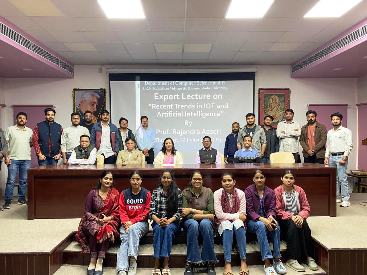 24 News Update उदयपुर। जनार्दन राय नागर राजस्थान विद्यापीठ (डीम्ड टू बी यूनिवर्सिटी) के डिपार्टमेंट ऑफ कंप्यूटर साइंस एंड इंफॉर्मेशन टेक्नोलॉजी द्वारा “रीसेंट ट्रेंड्स इन आईओटी एवं आर्टिफ़िशियल इंटेलिजेंस” विषय पर एक विशेषज्ञ व्याख्यान का आयोजन किया गया। कार्यक्रम का मुख्य उद्देश्य विद्यार्थियों को इंटरनेट ऑफ थिंग्स (IoT) तथा आर्टिफ़िशियल इंटेलिजेंस (AI) के नवीनतम रुझानों, उनकी कार्यक्षमता, व्यावहारिक उपयोगिता तथा भविष्य की संभावनाओं से अवगत कराना था। कार्यक्रम का शुभारंभ विभाग की निदेशक प्रो. मंजू माण्डोत के स्वागत संबोधन से हुआ। उन्होंने अतिथियों एवं विद्यार्थियों का स्वागत करते हुए कहा कि आधुनिक डिजिटल युग में इंटरनेट ऑफ थिंग्स और आर्टिफ़िशियल इंटेलिजेंस तेजी से मानव जीवन का अभिन्न हिस्सा बनते जा रहे हैं। इन तकनीकों ने न केवल दैनिक जीवन को अधिक सरल एवं स्मार्ट बनाया है, बल्कि शिक्षा, स्वास्थ्य, उद्योग, कृषि, परिवहन तथा व्यापार जैसे अनेक क्षेत्रों में नवाचार और विकास के नए आयाम भी स्थापित किए हैं। उन्होंने विद्यार्थियों को इन उभरती तकनीकों में दक्षता प्राप्त करने के लिए प्रेरित किया। कार्यक्रम के मुख्य वक्ता प्रोफेसर राजेंद्र असारी, हेड, कंप्यूटर साइंस विभाग, एसएमबी गवर्नमेंट कॉलेज, नाथद्वारा ने अपने व्याख्यान में इंटरनेट ऑफ थिंग्स तथा आर्टिफ़िशियल इंटेलिजेंस की कार्यप्रणाली को सैद्धांतिक और प्रायोगिक दोनों दृष्टिकोणों से विस्तारपूर्वक समझाया। उन्होंने बताया कि किस प्रकार सेंसर, नेटवर्क और डेटा एनालिटिक्स के माध्यम से IoT उपकरण आपस में जुड़कर स्मार्ट सिस्टम तैयार करते हैं। साथ ही, उन्होंने लाइव डेमो प्रस्तुत कर यह प्रदर्शित किया कि एआई किस प्रकार मशीन लर्निंग, डेटा प्रोसेसिंग और ऑटोमेशन के जरिए विभिन्न क्षेत्रों में क्रांतिकारी परिवर्तन ला रहा है। उन्होंने यह भी उल्लेख किया कि आने वाले समय में IoT और AI का उपयोग और अधिक व्यापक, प्रभावी तथा उद्योगों के लिए अनिवार्य हो जाएगा। इन तकनीकों से स्मार्ट सिटी, स्मार्ट हेल्थकेयर, इंडस्ट्रियल ऑटोमेशन, ड्राइवरलेस व्हीकल्स और डिजिटल गवर्नेंस जैसे क्षेत्रों में उल्लेखनीय प्रगति संभव होगी। उन्होंने विद्यार्थियों को इस क्षेत्र में करियर की अपार संभावनाओं की जानकारी भी दी। कार्यक्रम के दौरान विद्यार्थियों ने उत्साहपूर्वक प्रश्न पूछे, जिनका विशेषज्ञ द्वारा विस्तार से समाधान किया गया। संकाय सदस्यों ने भी विद्यार्थियों के साथ संवाद कर अपने विचार साझा किए। कार्यक्रम के अंत में धन्यवाद ज्ञापन डॉ. मनीष श्रीमाली द्वारा दिया गया तथा संचालन डॉ. भरत सुखवाल ने किया। इस अवसर पर संकाय सदस्य डॉ. भारत सिंह देवड़ा, डॉ. गौरव 