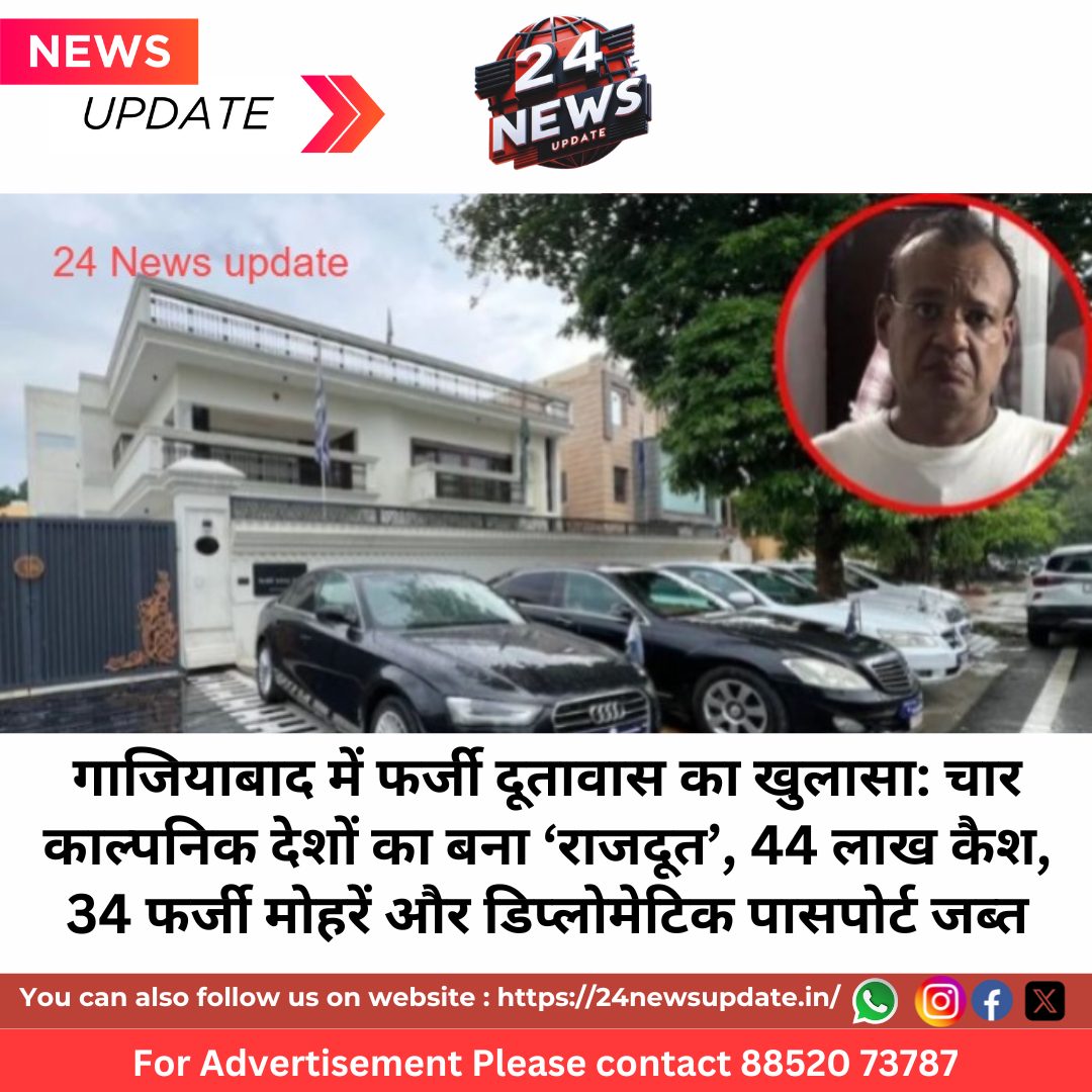24 न्यूज अपडेट, नई दिल्ली। उत्तर प्रदेश के गाजियाबाद जिले में मंगलवार को एक चौंकाने वाला मामला सामने आया, जब राज्य की स्पेशल टास्क फोर्स (STF) ने कविनगर इलाके में संचालित एक फर्जी दूतावास पर छापेमारी कर एक हाई-प्रोफाइल जालसाज को गिरफ्तार किया। आरोपी हर्षवर्धन जैन खुद को ‘वेस्ट आर्कटिक’, ‘सबोरगा’, ‘पुलावाविया’ और ‘लोडोनिया’ जैसे काल्पनिक देशों का कॉन्सुल एंबेसडर बताता था। STF ने उसे उसके किराए के मकान से गिरफ्तार किया, जहां वह खुद को विदेशी राजनयिक साबित करने के लिए ‘एम्बेसी ऑफ वेस्ट आर्कटिक’ के नाम से फर्जी दूतावास चला रहा था।