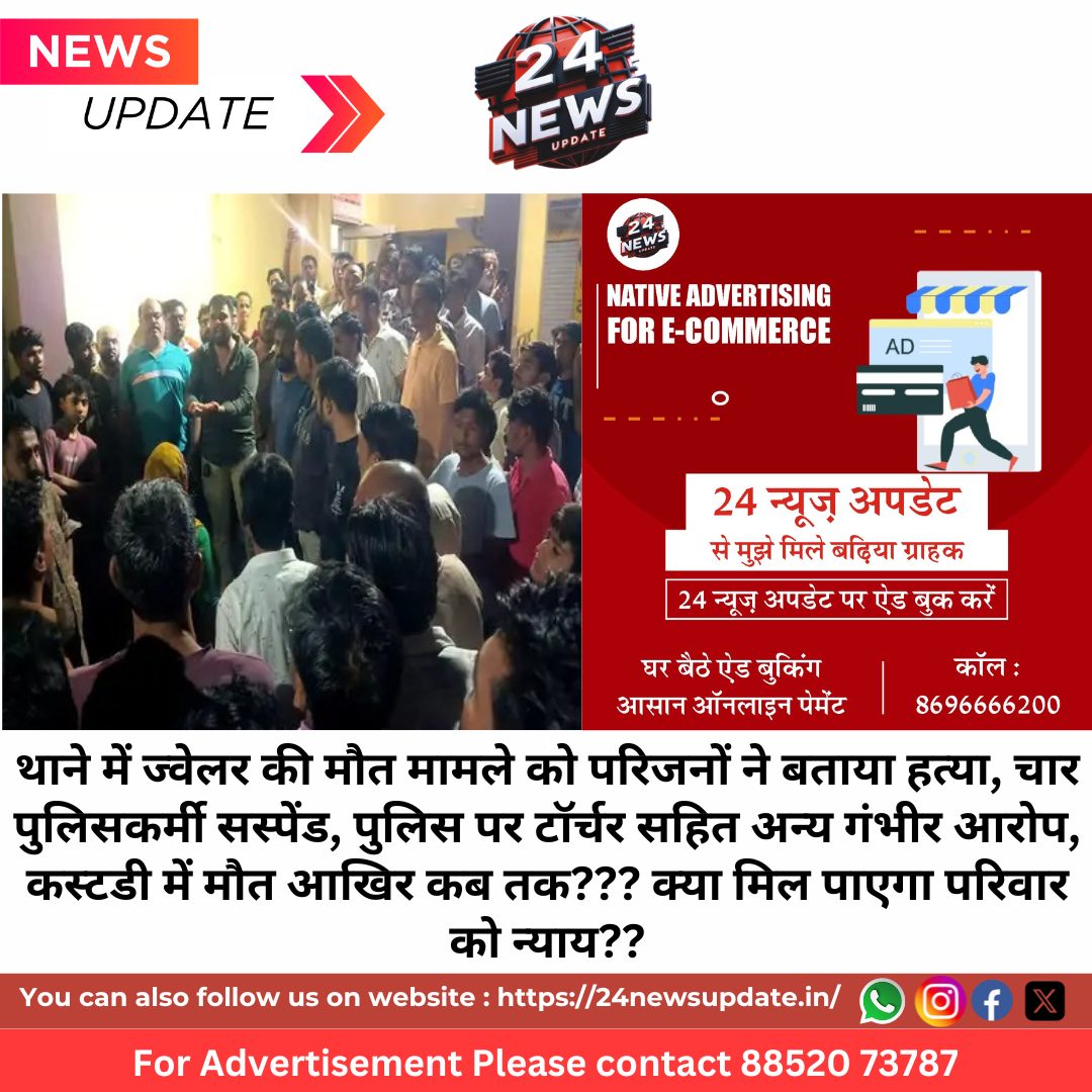 24 News Update उदयपुर। उदयपुर जिले के ऋषभदेव थाना क्षेत्र में हिरासत के दौरान एक ज्वेलर की मौत ने पूरे इलाके में हड़कंप मचा दिया है व आक्रोष की लहर है। 55 वर्षीय सुरेश पंचाल की मौत के बाद परिजनों और समाज के लोगों ने पुलिस पर कस्टडी में हत्या जैसे गंभीर आरोप लगाए हैं। क्या यह महज संयोग है या फिर पुलिस कस्टडी में हुए गंभीर टॉर्चर का नतीजा? सवाल कई हैं, लेकिन जवाब केवल फौरी कार्रवाई के बाद अब भी अधूरे हैं। आपको बता दें कि डूंगरपुर जिले के बिछीवाड़ा निवासी सुरेश पंचाल को सोमवार दोपहर ऋषभदेव पुलिस पूछताछ के लिए थाने लाई थी। आरोप था कि चोरी का सामान खरीदा है। शाम होते-होते खबर आई कि थाने में तबीयत बिगड़ गई और सामुदायिक स्वास्थ्य केंद्र ले जाया गया, जहां उन्हें मृत घोषित कर दिया गया। लेकिन परिजन इसे महज तबीयत बिगड़ना नहीं मान रहे वे इसे हिरासत में हत्या होना बता रहे हैं। मृतक के बेटे हिमांशु पंचाल ने आरोप लगाया कि उनके पिता को पहले उदयपुर के गोवर्धन विलास थाना ले गए, जहां डराया और धमकाया गया। इसके बाद ऋषभदेव लाया गया। “पिता बिल्कुल स्वस्थ थे, अचानक उनकी मौत कैसे हो सकती है? साफ है कि पुलिस की प्रताड़ना ने उन्हें मार डाला। अब स्थिति की गंभीरता को देखते हुए एसपी योगेश गोयल मौके पर पहुंचे और चार पुलिसकर्मियों को तत्काल सस्पेंड कर दिया। उन्होंने कहा कि परिजनों की रिपोर्ट पर जांच शुरू कर दी गई है और एडिशनल एसपी रैंक के अधिकारी से जांच कराई जा रही है। साथ ही करप्शन के अलग आरोपों की भी जांच होगी।समाज और व्यापारियों का फूटा गुस्सामौत की खबर फैलते ही बिछीवाड़ा, ऋषभदेव और आसपास के गांवों से बड़ी संख्या में लोग इकट्ठा हो गए। देर रात सामुदायिक स्वास्थ्य केंद्र और थाने के बाहर जोरदार विरोध हुआ। सर्राफा एसोसिएशन के अध्यक्ष यशवंत आंचलिया ने मीडिया से कहा, “पुलिस लंबे समय से व्यापारियों को बिना कारण प्रताड़ित कर रही है। एसपी ने खुद कहा था कि व्यापारियों से पूछताछ से पहले सर्राफा संघ को जानकारी दी जाए। लेकिन पुलिस मनमानी कर रही है। अब यह मौत इस लापरवाही की परिणति है।”मुआवजा और नौकरी की मांगमंगलवार सुबह ऋषभदेव कस्बे के पंचाल समाज के नोहरा (बाड़ा) में प्रशासन और समाज के लोगों के बीच बैठक हुई। परिजनों ने निष्पक्ष जांच, आर्थिक मुआवजा, और परिवार के एक सदस्य को सरकारी नौकरी देने की मांग की। बैठक में एडिशनल एसपी गोपाल स्वरूप मेवाड़ा, एसडीएम अंजना सुखवाल, और तहसीलदार वीरेंद्र राठौड़ मौजूद रहे।अब सवाल यह उठ रहे हैं कि पूछताछ के नाम पर पुलिस को कहां तक छूट दी जा सकती है? क्या नियमों को ताक पर रखकर हिरासत में टॉर्चर अब भी जारी है? ज्वेलर दोषी भी था, तो क्या पुलिस को कानून हाथ में लेने का अधिकार है? लोगों का कहना है कि यह स