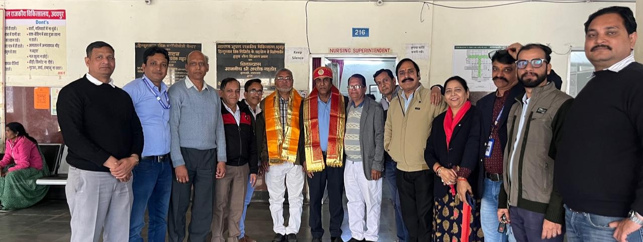 24 News Update उदयपुर। आरएनटी मेडिकल कॉलेज उदयपुर के सुपर स्पेशियलिटी हॉस्पिटल उदयपुर अधीक्षक के डॉ विपिन माथुर ने सीनियर नर्सिंग ऑफिसर सूर्य प्रकाश चौहान को कार्डियोलॉजी विभाग में नर्सिंग अधीक्षक कार्यालय प्रभारी नियुक्त किया है। सम्भागीय अध्यक्ष नरेश पूर्बिया ने बताया कि राजस्थान नर्सेज एसोसिएशन उदयपुर शहर के जिला अध्यक्ष पवन कुमार दानाध्यक्ष के नेतृत्व में कार्डियोलॉजी नर्सिंग अधीक्षक कार्यालय प्रभारी सूर्य प्रकाश चौहान का उपरणा ओढ़ाकर, पगड़ी पहनाकर स्वागत एवं अभिनंदन किया गया। कार्यक्रम में मुस्तन सर बोहरा, संतोष परमार, हरिश चौबीसा, प्रदीप मेहता ,करण सिंह दक, जितेंद्र देवड़ा,भोम सिंह मीणा, सुनीता सिंह , राजेन्द्र जैन, ललित भोजक,, विष्णु टेलर, रानी बारबर, संदीप, धीरज व्यास सहित कई सिनियर नर्सिंग आंफिसर उपस्थित थे।