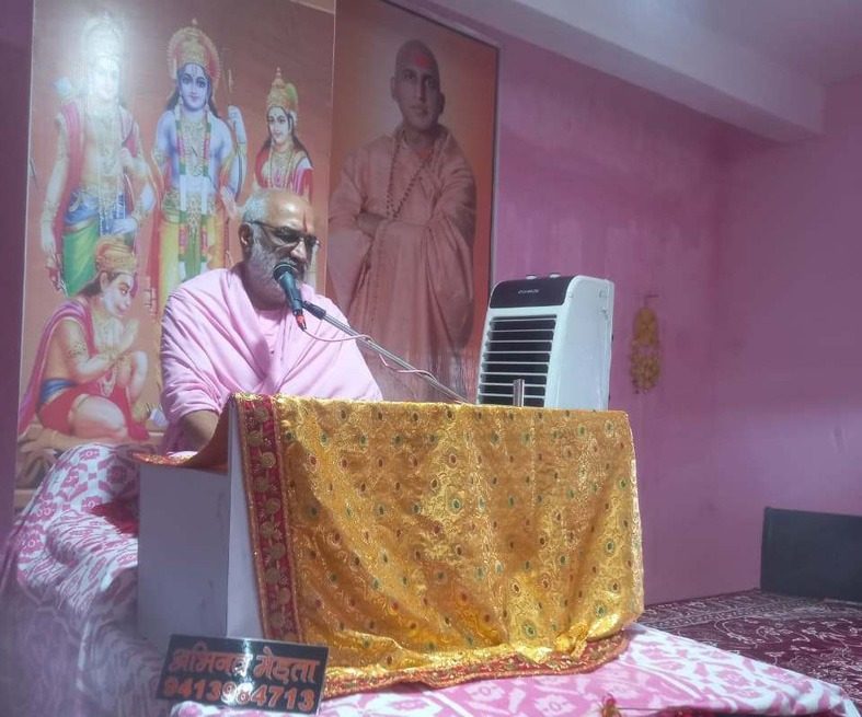 संत शास्त्री ने कहा दुख के समय धीरज रखनी चाहिए और शोक का परित्याग करना उचित है । सुमंत अयोध्या आकर रामचंद्र जी की सारी बातें राजा दशरथ को बताते है । राजा दशरथ सब सुनकर पृथ्वी पर गिर पड़े । ह््रदय मे जलन होने लगी वे तड़पने लगे । इस महान विपत्ति का वर्णन किया जाना असंभव है । तब राजा दशरथ को श्रवण कुमार के पिता के द्वारा दिये गये श्राप की याद आई अब पुत्र वियोग मे मेरी मृत्यु निश्चित है। राम-राम कहते हुए राम के विरह में शरीर त्याग कर स्वर्ग लोक सिधार गए । संत ने कहा जीने और मरने का फल दशरथ जी ने प्राप्त किया । जीते जी रामचंद्र के मुख को देख कर और मरते समय राम-राम का स्मरण कर जीवन सुधार लिया । मानव को भी अंतिम समय में भगवान का स्मरण करना चाहिए । भगवान के स्मरण मात्र से परमगति प्राप्त होती है। मन मं और किसी प्रकार की कामना नही रखनी चाहिए । जो दूसरों का अनिष्ट करता है अपने ही शरीर का पोषण करता है वह बड़ा निर्दयी है । वह हरि का भक्त नहीं हो सकता साधु पुरुष दुखी मनुष्य के दोष गुणो को नहीं गिनते । कानों से सुनी बात झूठी हो सकती है धोखा भी हो सकता है आंखों देखी बात सच होती है। भरत कोशल्या संवाद ,दशरथ की अन्तेष्टि क्रिया आदि प्रंसग की चर्चा शास्त्री ने कही। व्यर्थ मे किसी पर क्रोध नही करना चाहिए। जीवन और मरण मनुष्य के हाथ मे नही है। यह सब विधाता के हाथ मे है। ग्रहस्थ को मोह के कारण कर्म का त्याग न ही करना चाहिए। सन्यासी को दुनिया के प्रपंच मे नही पडना चाहिए। माता पिता गुरू एवं भाई बन्धु का विरोध नहीं करना चाहिए। संत ने कथा के दौश्रान कुछ पल की जीन्दगानी, इक रोज सबको जाना.. सहि भजन प्रस्तृत किये जिस पर भक्तजन झुमे। विभिन्न वाद्ययंत्रो पर केलाश माकड, लोकेश ठाकुर,मंगलेश भाटी,लता तायल आदी ने संगत दी। संत तउदयराम महाराज के सानिध्य पण्डित विनोद त्रिवेदी के मंत्रोच्चार पर विश्वामणी / शिवराम भावसार परिवार ने पोथी और व्यासपीठ का पूजन किया। इस अवसर पर रमाकांत भावसार, गणेश भावसार लक्ष्मण, प्रसाद भावसार,.बादल, कमल शर्मा, , लक्ष्मण, बादल,गणेश भावसार, हर्षित, हेमंन्त भावसार महेश,प्रभाशंकर फलोत, नयन, हेमंत शुक्ला, राजु भाई भावसार, हेमंत भावसार, मधुकर भावसार,राजेंद्र शुक्ला, लाला भाई भावसार पिंकी भावसार, मधुकान्ता भावसार, मंजुला शुक्ला,नयना त्रिवेदी, भावना भावसार, मीना भावसार सहित रामस्नही भक्त उपस्थित रहे।