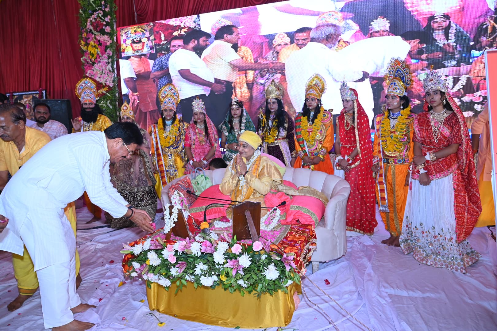 पूर्व सहकारिता मंत्री उदयलाल आंजना ने कथा स्थल पहुंचकर व्यास पीठ पर विराजित कथा वाचक मर्मज्ञा मंदाकिनी श्री रामकिंकर जी से आशीर्वाद लिया तथा इस अवसर पर परम पूज्य दीदी मां मंदाकिनी श्री रामकिंकर जी ने पूर्व सहकारिता मंत्री उदयलाल आंजना को उपर्णना ओढ़ाकर एवं तुलसी माला पहनाकर अभिनंदन किया। पूर्व सहकारिता मंत्री उदयलाल आंजना ने श्री शेषावतार कल्लाजी से क्षेत्र में सुख,शांति,समृद्धि, उन्नति और खुशहाली की प्रार्थना की। इस अवसर पर निंबाहेड़ा नगर कांग्रेस कमेटी अध्यक्ष बंशीलाल राईवाल,क्रय विक्रय सहकारी समिति अध्यक्ष एवं पूर्व प्रधान गोपाललाल आंजना,पूर्व विधान सभा युवा कांग्रेस अध्यक्ष एवं निवर्तमान पालिका पार्षद रवि प्रकाश सोनी,इत्यादि सहित बड़ी संख्या में ठाकुर जी के भक्तगण,गणमान्यजन एवं क्षेत्र के शहरी व ग्रामीण क्षेत्रों से आये श्रद्धालुगण उपस्थित थे।