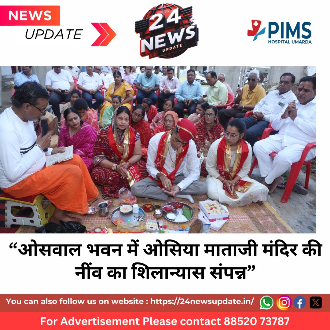 24 News Update Udaipur. ओसवाल भवन में ओसिया माताजी मंदिर के निर्माण को लेकर आज दिनांक 29 सितम्बर को नींव का शिलान्यास प्रातः 9:15 बजे के मुहूर्त पर संपन्न हुआ ओसवाल सभा अध्यक्ष प्रकाश चंद्र कोठारी की अध्यक्षता में आयोजित कार्यक्रम में नींव के मुहूर्त के लाभार्थी परिवार मेहता लीलाबाई जी स्वर्गीय जीवन सिंह जी, श्रीमती वंदना स्वर्गीय गजेंद्र जी, आशा-राजेश जी,हिया,व कृष्णा ने शीला स्थापना कर विधिवत पूजा अर्चना कर नींव भरी गई । राजस्थान में ओसिया माताजी का एकमात्र मंदिर जोधपुर जिले फलोदी के पास में स्थित है दक्षिणी राजस्थान में ओसिया माताजी का एक भी मंदिर नहीं बना हुआ है ओसिया माताजी सकल ओसवाल समाज की कुलदेवी है दक्षिणी राजस्थान में उक्त मंदिर बन जाने से दर्शनार्थियों को दर्शन एवं पूजा का लाभ प्राप्त हो सकेगा जिससे यहां की जनता को फायदा मिलेगा। उक्त मंदिर का निर्माण आज से ही तीव्र गति से प्रारंभ कर दिया गया है मंदिर का निर्माण पूर्ण होकर मंदिर जी का लोकार्पण शुभ मुहूर्त में किया जाएगा जो कि आगामी जनवरी 2026 में प्रस्तावित है इससे पूर्व ओसवाल सभा से श्रद्धालु रवाना होकर ओसिया माताजी से ज्योत लेने हेतु जाएंगे वहां से ज्योत लाकर उक्त मंदिर मेंस्थापना की जाएगी। इस शुभ अवसर पर सचिव आनंदीलाल बंबोरिया, कोषाध्यक्ष फतेह सिंह मेहता, उपाध्यक्ष डॉ तुक्तक भाणावत, भंडार संरक्षक फतेहलाल कोठारी, वास्तु विद निर्मल कुमार हडपावत कार्यकारिणी सदस्य अशोक कुमार मेहता, सुमन कोठारी, डॉ नीता मेहता, स्नेह लता मोगरा, अनीता गांधी के साथ ही ओसवाल महिला प्रकोष्ठ की अध्यक्ष किरण पोखरना, बहू प्रकोष्ठ की अध्यक्ष वंदना दक, कार्य परिषद के तेज सिंह भंडारी, गिरीश मेहता, नरेंद्र चौधरी, महेश नलवाया, हिमांशु मेहता, अविनाश चावत, सुधीर मेहता, नवरतन कोठारी, भूपेश खमेसरा ,नरेश नागोरी, आरसी मेहता, एडवोकेट महेंद्र सिंह मेहता,अनुराग मेहता, विनोद मांडोत, करण सिंह कटारिया, राजकुमार नलवाया, नरेंद्र कुमार कच्छारा, प्रकाश डूंगरवाल, हेमंत दक, हिम्मत जैन सुभाष जैन के साथ ही ओसवाल सभा के सभी किराएदार दुकानदारों की उल्लेखनीय उपस्थिति रही। लाभार्थी परिवार के सभी परिजन सदस्य सहित 100 से अधिक सदस्य इस शुभ अवसर पर उपस्थित रहे। कार्यक्रम के दौरान डॉ प्रमिला जैन द्वारा नवकार मंत्र पाठ ,लोगस्स का ध्यान एवं मांगलिक का श्रवण कराया गया । कार्यक्रम की समाप्ति पश्चात सभा परिवार की ओर से सभी उपस्थित सदस्यों के लिए नवकारसी की व्यवस्था रखी गई। Share this: Share on X (Opens in new window) X Share on Facebook (Opens in new window) Facebook More Email a link to a friend (Opens in new window) Email Share on WhatsApp (Opens in new window) WhatsApp Like this:Like Loading... Related Discover more from 24 News Update Subscribe to get the latest posts sent to your email. Type your email… Subscribe Post navigation ज्वारा विसर्जन में उमड़ा श्रद्धा का सैलाब, इन्द्रदेव ने बरसाई कृपा दोवड
