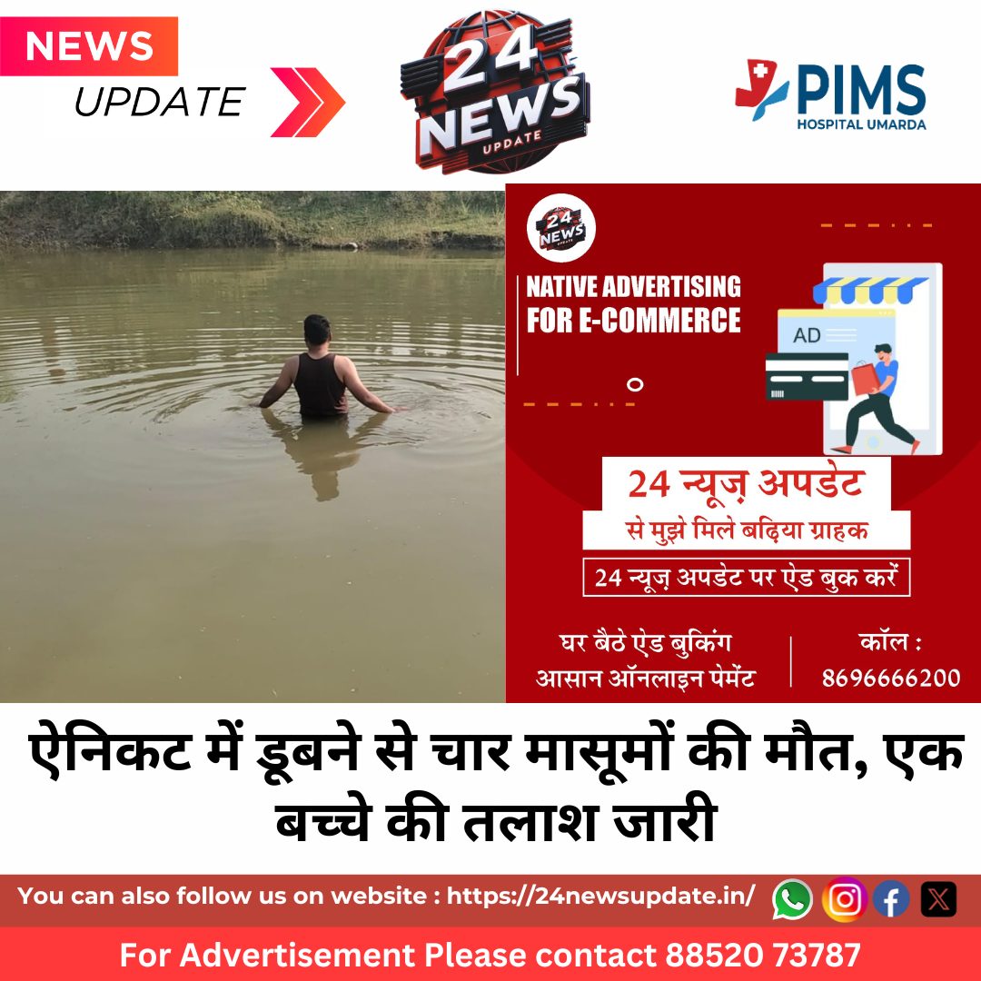 24 News Update. उदयपुर। डबोक थाना क्षेत्र से आज दोपहर एक दर्दनाक खबर सामने आई। भमरासिया घाटी, काकरनाडा लक्ष्मणपुरा पावर हाउस के पास ऐनिकट में डूबने से चार बच्चों की मौत हो गई। सभी बच्चे कालबेलिया समाज, जोगी बस्ती के निवासी बताए जा रहे हैं। मृतकों में तीन लड़के और एक लड़की शामिल हैं, जिनकी उम्र 13 से 15 वर्ष के बीच है।