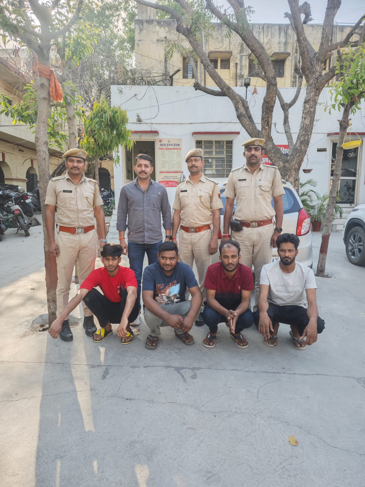 24 news update उदयपुर। राजस्थान पुलिस महानिदेशक यू.आर. साहू द्वारा मॉब लिंचिंग, संगठित अपराध और आतंकवादी गतिविधियों जैसे जघन्य अपराधों के विरुद्ध कठोर कार्रवाई के निर्देश देते हुए संबंधित अपराधों में नए कानूनों के तहत त्वरित एफआईआर दर्ज करने के आदेश जारी किए गए हैं। इसी क्रम में जिला पुलिस अधीक्षक उदयपुर योगेश गोयल ने अपराधियों पर शिकंजा कसने के लिए सख्त निर्देश जारी किए। इन निर्देशों की पालना में अंबामाता थानाधिकारी मुकेश सोनी ने एक बड़ी कार्रवाई को अंजाम देते हुए हिस्ट्रीशीटर मोहम्मद इस्माईल उर्फ मनु उर्फ बड़ा मेवाती सहित तीन अन्य बदमाशों को गिरफ्तार किया, जो शहर में एक सुनियोजित सिंडिकेट बनाकर आम लोगों को धमकाकर धन वसूली जैसी संगठित आपराधिक गतिविधियों में लिप्त थे।