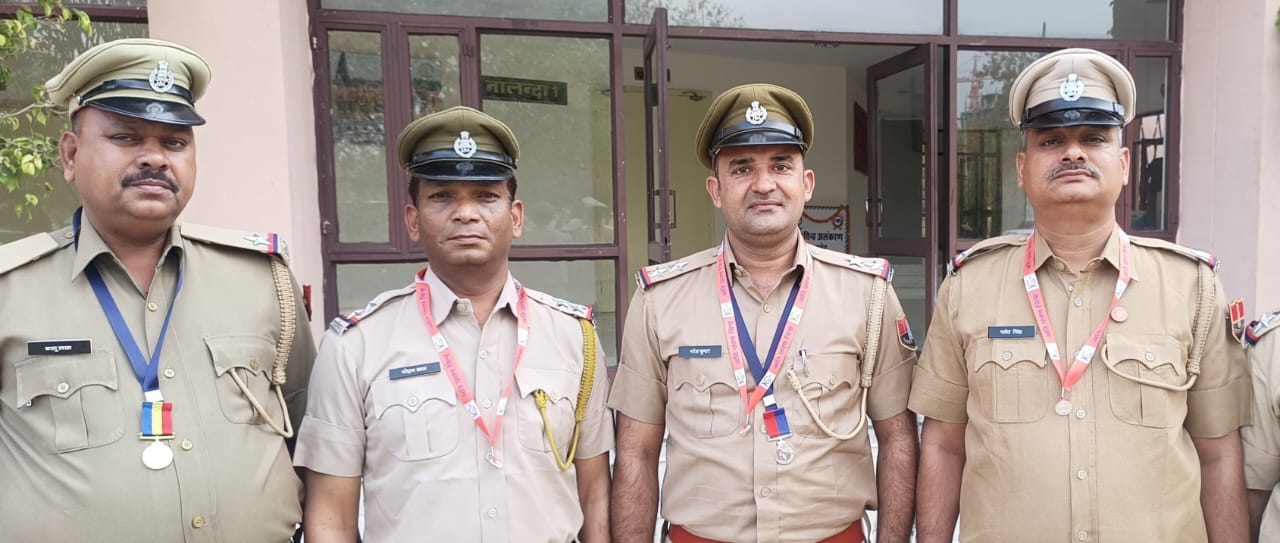 24 News Update उदयपुर. सीआईडी इंटेलिजेंस राजस्थान का प्रदेश स्तरीय अलंकरण समारोह बुधवार को राजस्थान पुलिस अकादमी जयपुर में आयोजित किया गया। जिसमें महानिदेशक पुलिस इंटेलीजेंस, राजस्थान संजय अग्रवाल ने सीआईडी जोन उदयपुर के अधिकारीगण बालुलाल सहायक उप निरीक्षक को अति उत्कृष्ट सेवा पदक, नरेश चौबीसा, उप निरीक्षक को उत्कृष्ट सेवा पदक , मोहन लाल उप निरीक्षक को अति उत्तम एवं पर्वत सिंह सहायक उप निरीक्षक को अति उत्तम सेवा चिन्ह से नवाजा गया। उक्त सेवा अलंकरण गृह मंत्रालय भारत सरकार एवं गृह मंत्रालय राजस्थान सरकार की ओर से कर्तव्य निष्ठा , सराहनीय , बेदाग एवं ईमानदारी से राजकीय सेवा कार्य निष्पादन के उपरांत सम्मानित किया गया।