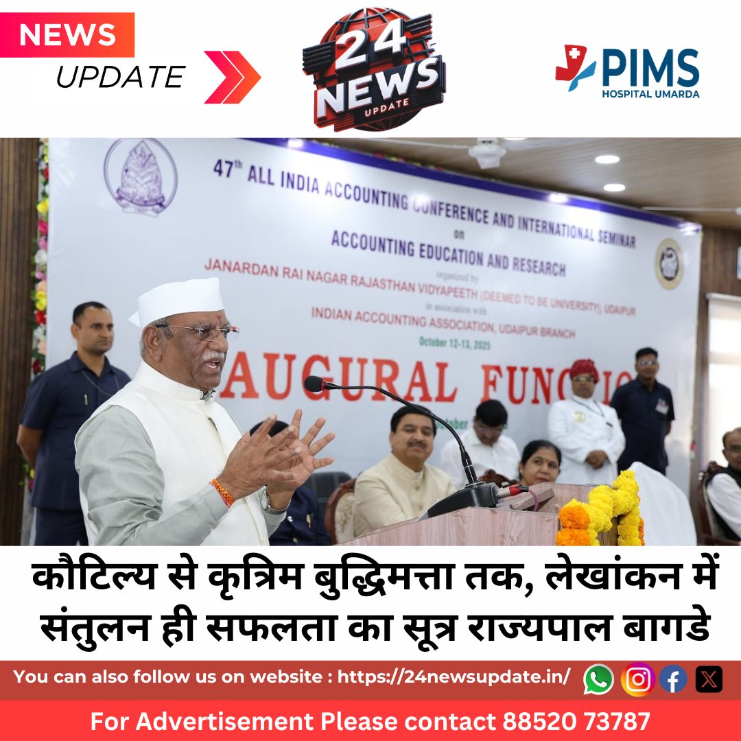 24 News Udpate उदयपुर। राजस्थान के राज्यपाल महामहिम हरिभाऊ किसनराव बागडे ने कहा कि “लेखा शिक्षा और अनुसंधान एक-दूसरे के पूरक हैं। अनुसंधान से प्राप्त नवीन ज्ञान को शिक्षा में समाहित करने से शैक्षिक गुणवत्ता में वृद्धि होती है और यह राष्ट्र निर्माण का आधार बनता है।”
