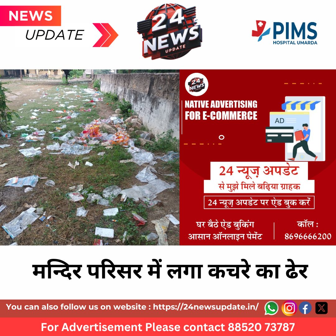 रिपोर्ट- राहुल पाटीदार 24 News Udpate कानोड| नगर पालिका क्षेत्र के आकोला रोड पर स्थित चामुण्डा माता मन्दिर परिसर में दशहरा मेले व अहिरावण पुतला दहन को चार दिन व्यतीत होने पर भी परिसर में सफाई नहीं हुई। पूरे मन्दिर परिसर में कचरे के ढेर पडे हुए है । मन्दिर से जुडे दर्शनार्थियों ने बताया कि नगर पालिका में बार बार कहने पर भी सफाई नहीं हो रही जिससे मन्दिर में दर्शन के लिए आने वाले श्राद्धालुओं को दिक्कत का सामना करना पड रहा है ।मन्दिर परिसर से सटा दीनदयाल उपाध्याय स्टेडियम है जहां सुबह शाम सैकडों लोग व्यायाम ओर दौड के लिए आते है। ऐसे में उडते कचरे ओर कचरे के ढेर से समस्या का सामना करना पड रहा है । कचरे में प्लास्टिक की थेलिया है ओर यह परिसर बिहड क्षेत्र, जिसमें पशु चरने आते है ओर यह प्लास्टिक की थेलिया उनके खाने में जा रही है । लोगों ने बताया कि हमने सत्तारूढ पार्टी पदाधिकारियों को भी अवगत करवाया पर कोई समाधान न हुआ। मन्दिर परिसर बिहड क्षेत्र है ,ऐसे में प्लास्टिक कचरे के कारण पशुओं के खाने में कचरा जा रहा है ।प्रशासन को जल्द सफाई करवानी चाहिए। Share this: Share on X (Opens in new window) X Share on Facebook (Opens in new window) Facebook More Email a link to a friend (Opens in new window) Email Share on WhatsApp (Opens in new window) WhatsApp Like this:Like Loading... Related Discover more from 24 News Update Subscribe to get the latest posts sent to your email. Type your email… Subscribe Post navigation उदयपुर में कामिनी गुर्जर ने दिखाई शक्ति, जेसीबी से पुष्पवर्षा कर किया कांग्रेस प्रभारियों का भव्य स्वागत प्रोफेसर डॉक्टर सक्का स्वर्गीय प्रधानमंत्री लाल बहादुर शास्त्री जी के संग्रहालय में विश्व की सबसे छोटी चांदी की अटैची, चांदी की चंपल, व हाथ का पंखा, भेंट करेंगे प्रधानमंत्री को लिखा पत्र