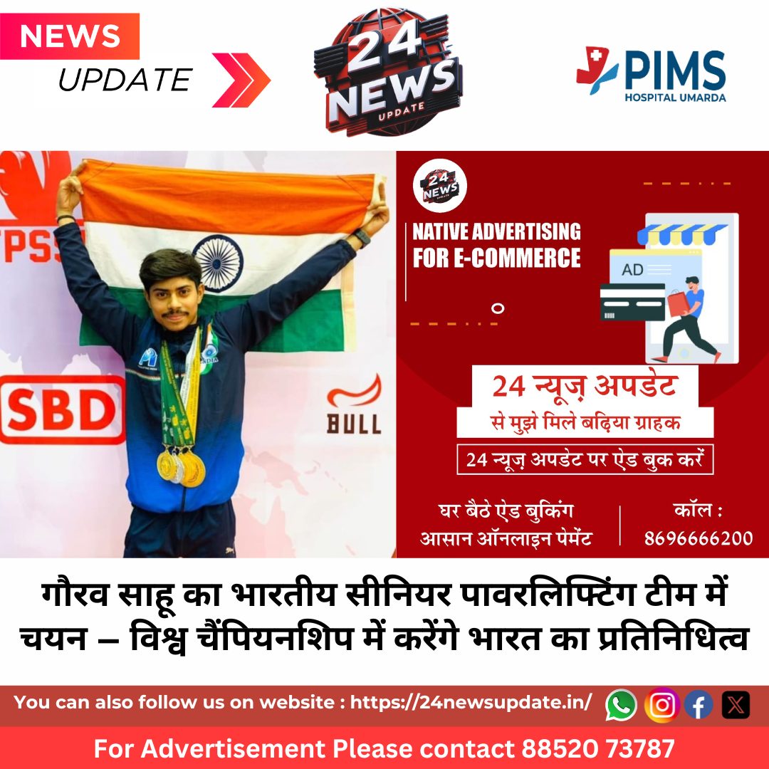 गौरव साहू इससे पहले इस्तांबुल (तुर्की) में आयोजित एशियन जूनियर पावरलिफ्टिंग चैंपियनशिप में चार स्वर्ण पदक जीत चुके हैं। उन्होंने हांगकांग में हुई एशियन सब-जूनियर चैंपियनशिप में कांस्य पदक भी अपने नाम किया था। यह उनका तीसरा अंतरराष्ट्रीय दौरा होगा।