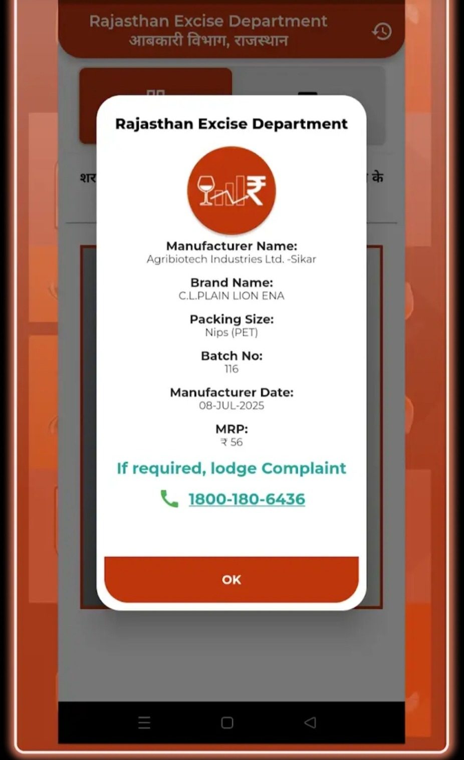 24 News Update उदयपुर | प्रदेश में अवैध और नकली शराब के बढ़ते खतरे के बीच आबकारी विभाग ने आम नागरिकों को बड़ी राहत दी है। अब शराब खरीदने वाला हर व्यक्ति बोतल की असलियत खुद जांच सकेगा। आबकारी विभाग का ‘सिटीजन ऐप’ अब गूगल प्ले स्टोर पर उपलब्ध है, जिसके जरिए मदिरा की बोतल पर लगे होलोग्राम स्टीकर के QR कोड को स्कैन कर रियल टाइम जानकारी प्राप्त की जा सकती है।