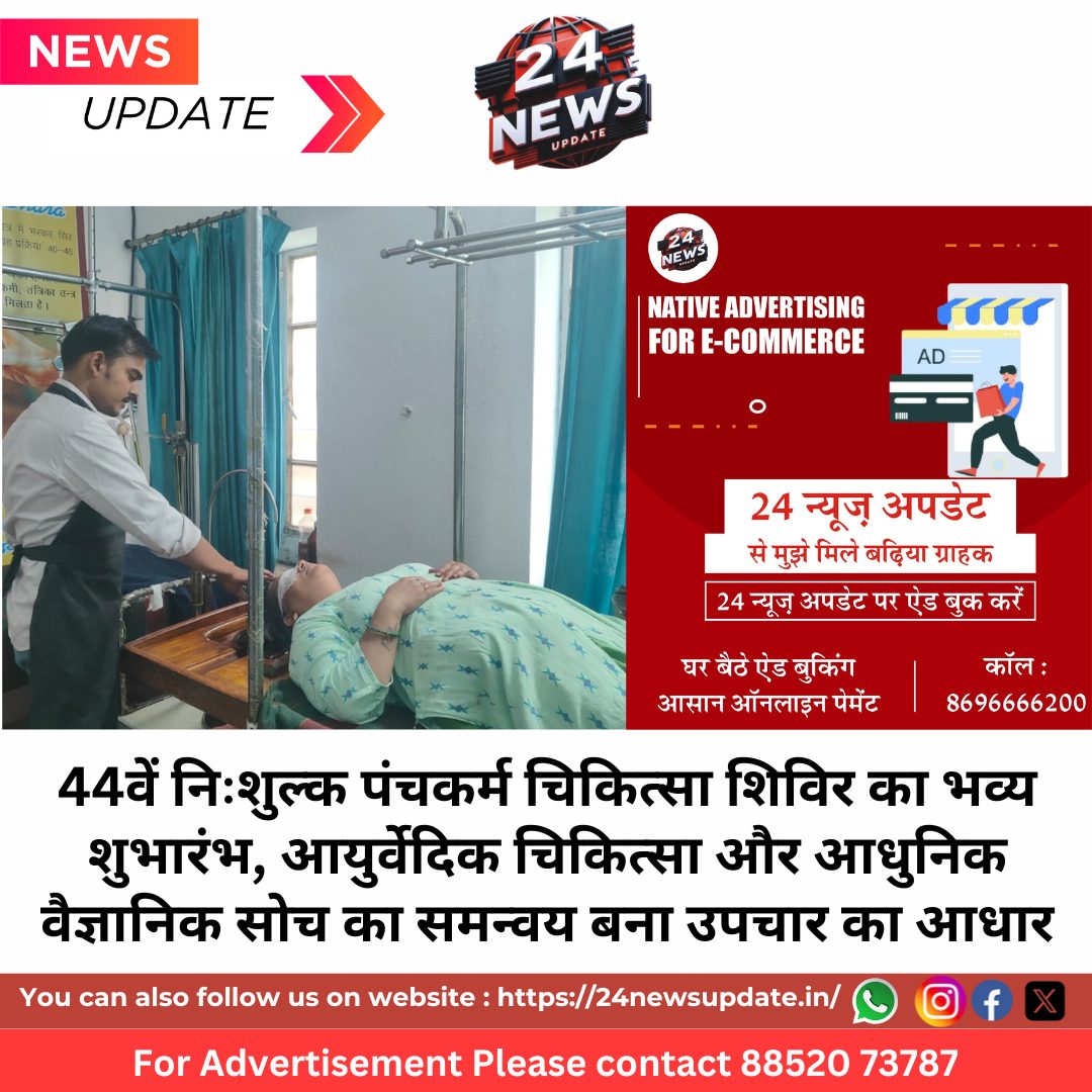24 न्यूज अपडेट, उदयपुर। आरोग्य समिति एवं राजकीय आदर्श आयुर्वेद औषधालय, सिन्धी बाजार, उदयपुर के संयुक्त तत्वावधान में 44वें निःशुल्क पंचकर्म चिकित्सा शिविर का शुभारंभ आज पारंपरिक रूप से भगवान धन्वंतरि के समक्ष दीप प्रज्वलन कर किया गया। यह शिविर आयुर्वेदिक परंपरा एवं आधुनिक चिकित्सा विज्ञान के संगम का प्रतीक है, जिसमें पंचकर्म चिकित्सा के माध्यम से रोगियों को प्राकृतिक, प्रभावशाली एवं सुरक्षित उपचार प्रदान किया जा रहा है।