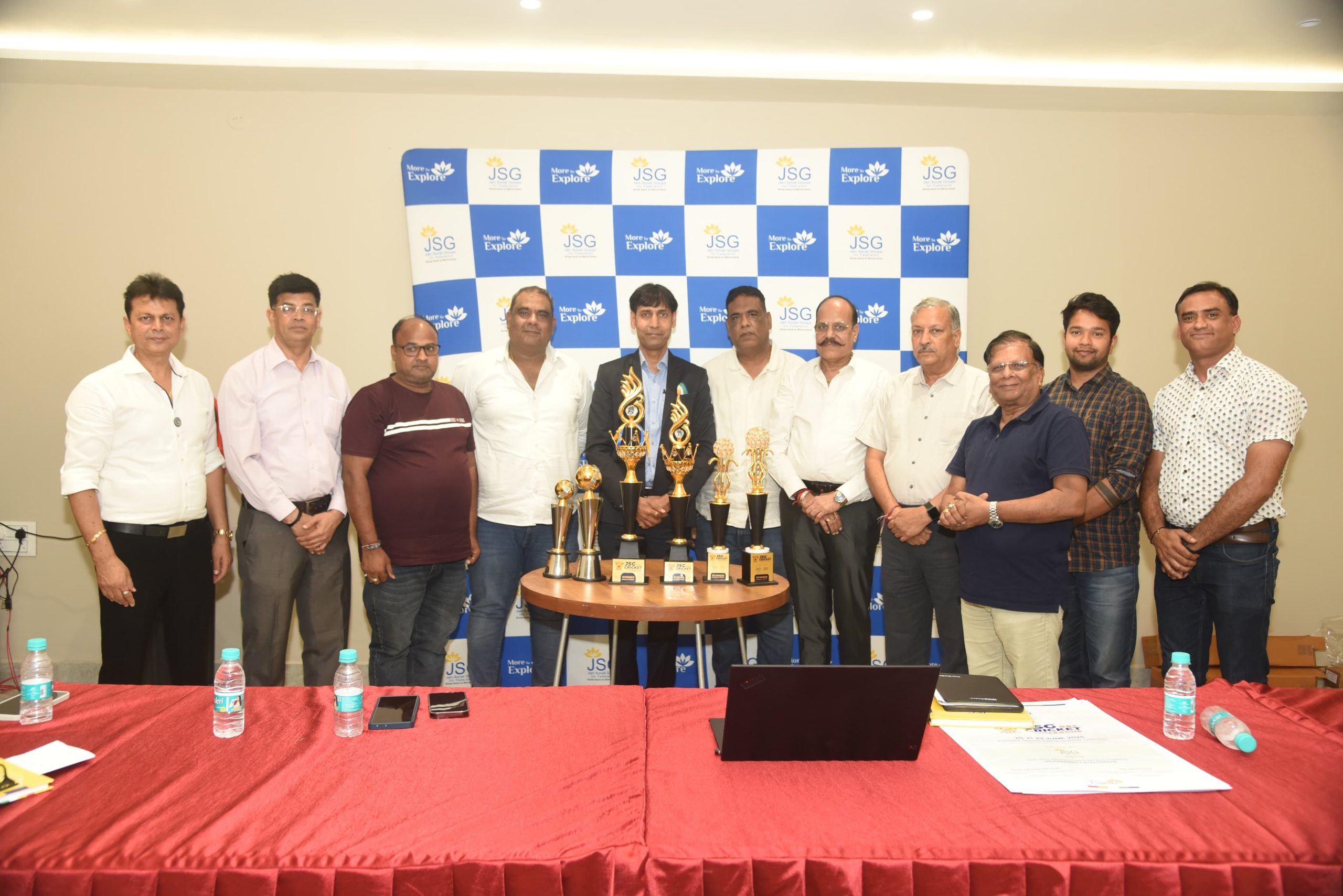 24 News update उदयपुर। जैन सोशल ग्रुप इंटरनेशनल फेडरेशन (जेएसजीआईएफ) मेवाड़ रीजन द्वारा आयोजित जेएसजी बॉक्स क्रिकेट लीग 2025 की चमचमाती ट्रॉफी और विशेष टाई का भव्य विमोचन बुधवार को होटल ब्रज, सुखेर में किया गया। इस मौके पर टूर्नामेंट में भाग लेने वाली 39 टीमों के कप्तान, ऑनर्स और सहयोगी भी मौजूद रहे।