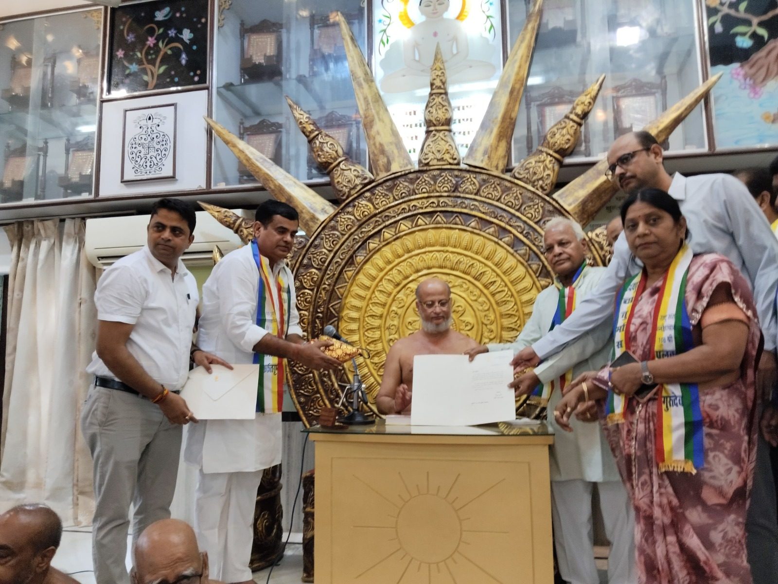 24 News Update उदयपुर। सर्वऋतु विलास स्थित महावीर दिगम्बर जैन मंदिर में चातुर्मास को विराजित राष्ट्रसंत पुलक सागर महाराज का चातुर्मास धूमधाम से सम्पादित हो रहा है। चातुर्मास समिति के अध्यक्ष विनोद फान्दोत ने बताया कि गुरु पूर्णिमा के पावन अवसर पर गुरुवार को भारतीय जनता पार्टी शहर जिला उदयपुर के पदाधिकारियों द्वारा आचार्यश्री के दर्शन कर उनको श्रीफल भेंट कर उनका आशीर्वाद लिया। फान्दोत ने बताया कि सर्वप्रथम भाजपा शहर जिला अध्यक्ष गजपाल सिंह राठौड़ ने आचार्य श्री के चरणों में अभिवादन चरण वंदन कर राजनीतिक संगठन की ओर से गुरु पूर्णिमा महोत्सव पर्व को संपूर्ण प्रदेश में मनाने की योजना एवं उसी के माध्यम से साधु संतों के सम्मान का कार्य करने की मुख्यमंत्री की भावना को उन तक पहुंचाई। उन्होंने इस अवसर पर मुख्यमंत्री द्वारा प्रेषित आचार्यश्री के सम्मान में संदेश को वाचन कर सुनाया। तत्पश्चात गजपाल सिंह राठौड़, शहर विधायक ताराचंद जैन, महामंत्री किरण जैन, अतिरिक्त जिलाधीश दीपेंद्र सिंह, देवस्थान के सहायक आयोग जतिन गांधी ने मुख्यमंत्री भजनलाल शर्मा का संदेश आचार्यश्री को भेंट किया। तत्पश्चात उपस्थित सभी कार्यकर्ताओं ने आचार्यश्री को अभिवादन कर श्रीफल भेंट किया।