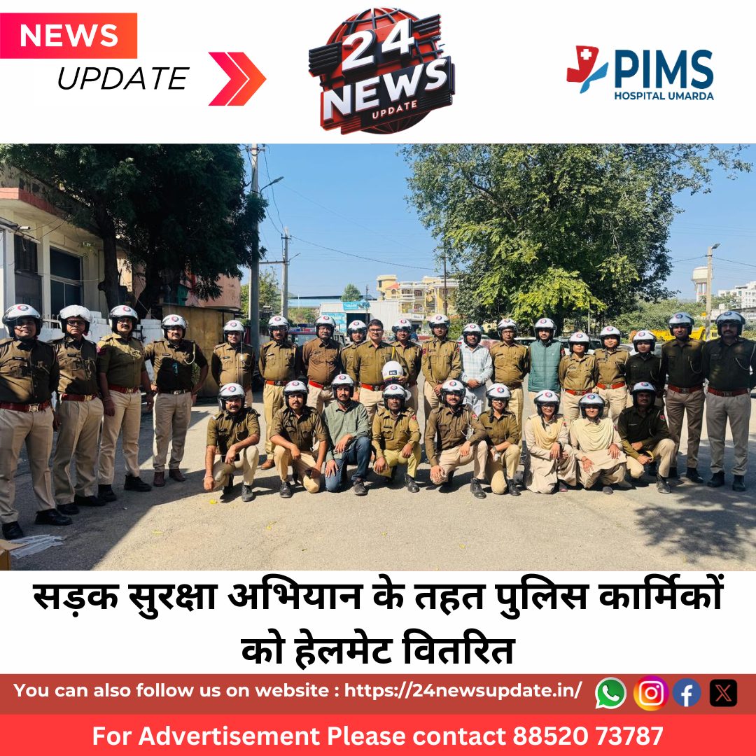 24 News Update उदयपुर। सड़क सुरक्षा अभियान के अंतर्गत बुधवार को पुलिस थाना गोवर्धनविलास में हेलमेट वितरण कार्यक्रम आयोजित किया गया। कार्यक्रम का आयोजन जिला पुलिस अधीक्षक योगेश गोयल, भा.पु.से. के निर्देशानुसार तथा अतिरिक्त पुलिस अधीक्षक (मुख्यालय) उदयपुर श्री गोपाल स्वरूप मेवाड़ा, आरपीएस के सुपरविजन में किया गया।