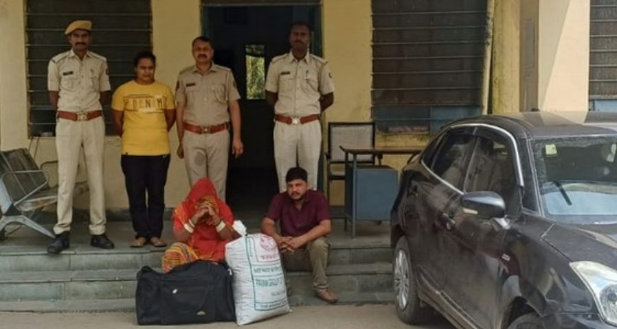थानाधिकारी उत्तम सिंह के नेतृत्व में गठित पुलिस टीम ने शुक्रवार को चेकिंग के दौरान आरजे 06 सीजी 2143 नंबर की बलेनो कार को रोका। कार में एक युवक और एक युवती बैठे थे, जो आपस में पति-पत्नी निकले। पूछताछ और तलाशी में कार के अंदर एक कट्टे और एक थैले में भारी मात्रा में सूखा गांजा पाया गया।