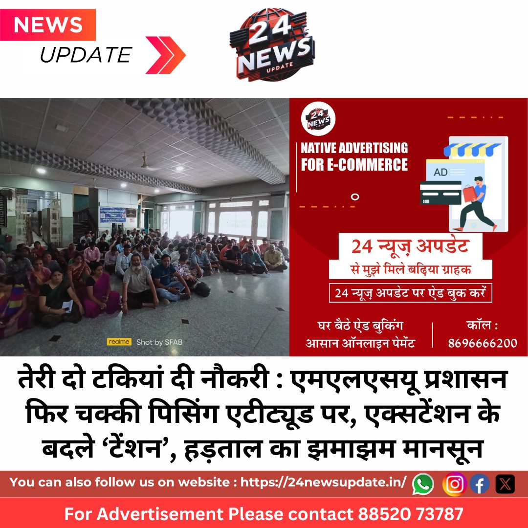 24 न्यूज अपडेट, उदयपुर। मोहनलाल सुखाड़िया विश्वविद्यालय में स्ववित्त पोषित सलाहकार मंडल-एसएफएबी के तहत कार्यरत कर्मचारियों ने एक बार फिर हड़ताल का रास्ता अपनाते हुए सोमवार को प्रशासनिक भवन के बाहर प्रदर्शन किया। चक्की पिसिंग एटीट्यूड एमएलएसयू प्रशासन का एक बार फिर से चालू हो गया है। बार बार हड़ताल, बार बार सरकारी आदेश, बार-बार वेतन रोकना, बार बार प्रयास कि किसी भी तरह से दो टकियां दी नौकरी जिसमें लाखों का काम होता है, उसे छीन लिया जाए। नौकरी को कटी पंतग बनाकर छोड़ दिया जाए।