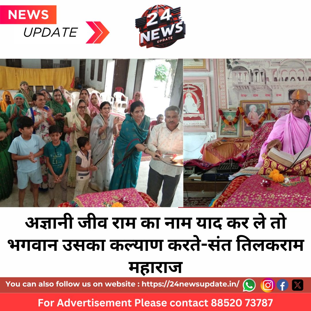 24 News Update सागवाड़ा (जयदीप जोशी)। आसपुर मार्ग लोहारिया तालाब के सामने स्थित कान्हडदास दास धाम बड़ा रामद्वारा में चातुर्मास कर रहे रामस्नेही संत तिलकराम ने सत्संग में बताया कि मछली समुद्र के पानी को गंदा करती है मगर समुद्र उसको कुछ नहीं कहता अवगुणों की ओर कोई ध्यान नहीं देता । अज्ञानी जीव राम का नाम याद कर ले तो भगवान उसका कल्याण करते हैं ।
