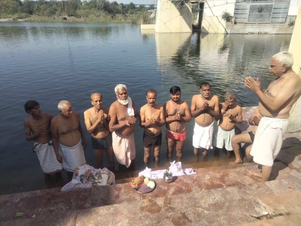 24 News Update निम्बाहेडा (कविता पारख)। घोसुण्डा बागेश्वर महादेव घोसुण्डा सतपुड़ा में नन्दीश्वर और शिव परिवार की प्राण प्रतिष्ठा के बाद खंडित मूर्तियों और यज्ञ भस्मी का विसर्जन मेवाड़ के हरिद्वार मातृकुंडिया में किया गया। शिव मंडल के सभी सदस्यों द्वारा गुरुवार को 11.15 सुबह वैदिक मंत्रोच्चार के साथ विसर्जन किया गया विसर्जन के पश्चात बागेश्वर महादेव में 12 गांव के भक्तजन ने प्रसादी का आयोजन किया गया । इस अवसर पर बड़ी संख्या में भक्तजन उपस्थित थे और उन्होंने प्रसादी में भाग लिया इस आयोजन में बड़ी संख्या में भक्तजन उपस्थित थे यह एक धार्मिक और सामाजिक आयोजन था जिसमें स्थानीय लोगों ने बढ़-चढ़कर भाग लिया।
