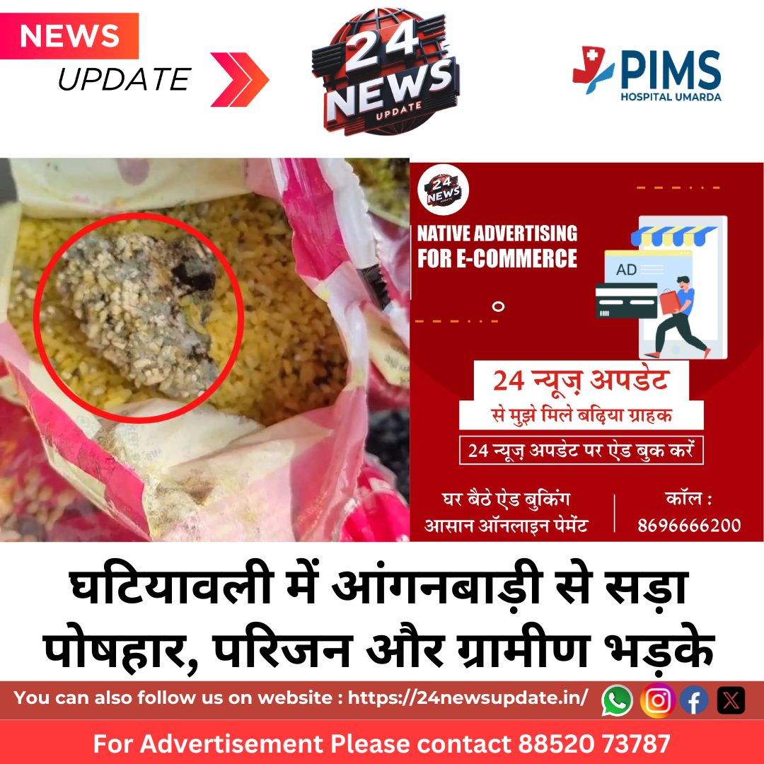 24 News Update निम्बाहेडा (कविता पारख)। छोटे बच्चों के लिए वितरित पोषहार सड़ा हुआ मिलने से घटियावली गांव में हड़कंप मच गया। इस घटना के बाद परिजन और ग्रामीण आंगनबाड़ी केंद्र पर भड़क उठे।