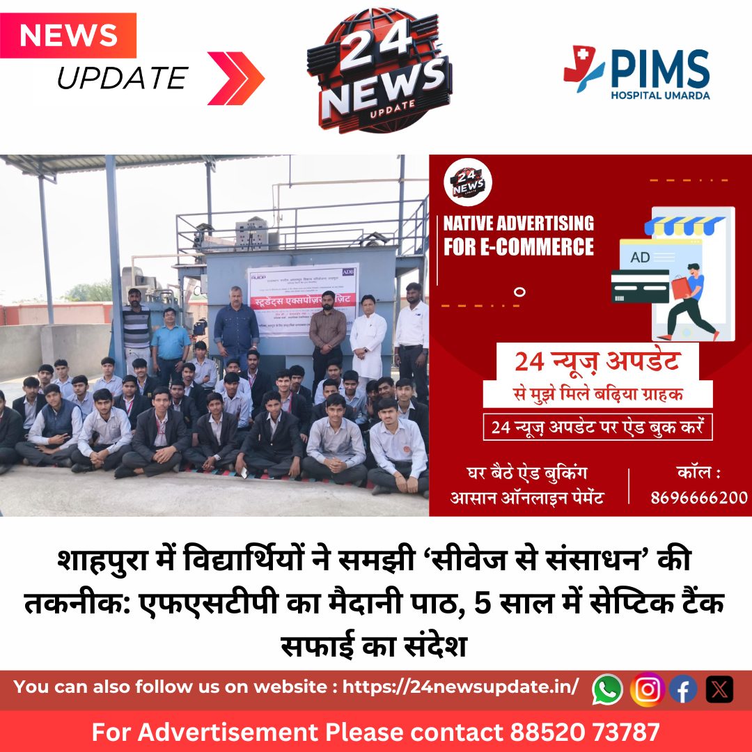24 News Update शाहपुरा। शाहपुरा में स्वच्छता और तकनीक का अनूठा संगम देखने को मिला, जब 21 फरवरी 2026 को छात्रों ने जहाजपुर रोड स्थित निर्माणाधीन फीकल स्लज ट्रीटमेंट प्लांट (एफएसटीपी) का शैक्षणिक भ्रमण किया। यह कार्यक्रम राजस्थान नगरीय आधारभूत विकास परियोजना (आरयूआईडीपी) के सामुदायिक जागरूकता एवं जन सहभागिता अभियान के तहत आयोजित किया गया। तकनीक की जमीनी समझआदर्श विद्या मंदिर उच्च माध्यमिक विद्यालय गांधी नगर के विद्यार्थियों को नगर पालिका के कनिष्ठ अभियंता प्रहलाद गुलपारिया ने एफएसटीपी की कार्यप्रणाली विस्तार से समझाई। छात्रों ने प्लांट की प्रमुख इकाइयों—प्राइमरी ट्रीटमेंट यूनिट, एमबीआर (मेम्ब्रेन बायोरिएक्टर), स्टेबलाइजेशन टैंक, स्क्रू प्रेस और स्लज ड्रायर—की तकनीकी भूमिका को नजदीक से जाना। उन्हें बताया गया कि घरों से निकला फीकल स्लज वैज्ञानिक प्रक्रिया से गुजरकर कैसे सुरक्षित निपटान और उपयोगी उत्पाद में बदला जाता है। सेप्टिक टैंक सफाई की प्रक्रिया और शुल्कजयपुर कैप इकाई के डिप्टी टीम लीडर अनिल सिंह ने विद्यार्थियों को जानकारी दी कि शहरवासी अपने सेप्टिक टैंक या शोकपिट की सफाई नगर पालिका में निर्धारित 1500 रुपये शुल्क जमा करवा कर करवा सकते हैं। उपचारित स्लज को खाद के रूप में खेतों में उपयोग किया जाएगा, जिससे गंदगी और खुले निस्तारण की समस्या से राहत मिलेगी तथा पर्यावरण स्वच्छ रहेगा। उन्होंने विद्यार्थियों से अपील की कि वे अपने परिवारों को प्रेरित करें कि सेप्टिक टैंक हर पांच वर्ष में अनिवार्य रूप से खाली करवाएं। इस संबंध में जानकारी और सेवा के लिए टोल-फ्री नंबर 18002578182 उपलब्ध है। स्वच्छता और जनजागरूकता पर जोरकैप इकाई के सीएमई सौरभ पाण्डे ने एफएसटीपी के पर्यावरणीय और स्वास्थ्य संबंधी लाभों पर प्रकाश डाला तथा व्यक्तिगत स्वच्छता के महत्व को रेखांकित किया। कार्यक्रम में सहायक सामाजिक विकास एवं जेंडर स्पॉट अधिकारी महेंद्र सिंह राणावत सहित विद्यालय के अनेक छात्र-छात्राओं ने सक्रिय भागीदारी की। ‘वेस्ट टू वैल्यू’ की दिशा में कदमएफएसटीपी जैसी परियोजनाएं शहरी स्वच्छता प्रबंधन को वैज्ञानिक आधार देती हैं—जहां अपशिष्ट को संसाधन में बदला जाता है। शाहपुरा में आयोजित यह भ्रमण न केवल तकनीकी शिक्षा का हिस्सा बना, बल्कि विद्यार्थियों के माध्यम से घर-घर स्वच्छता का संदेश पहुंचाने की पहल भी साबित हुआ। Share this: Share on X (Opens in new window) X Share on Facebook (Opens in new window) Facebook More Email a link to a friend (Opens in new window) Email Share on WhatsApp (Opens in new window) WhatsApp Like this:Like Loading... Related Discover more from 24 News Update Subscribe to get the latest posts sent to your email. Type your email… Subscribe Post navigation कोठारी नदी में पुलिस की दबिश: अवैध बजरी खनन पर ताला, 2 ट्रैक्टर–1 जेसीबी जब्त,चालक फरार बारां पुलिस की बड़ी कार्रवाई: 40 करोड़ के अवैध पटा