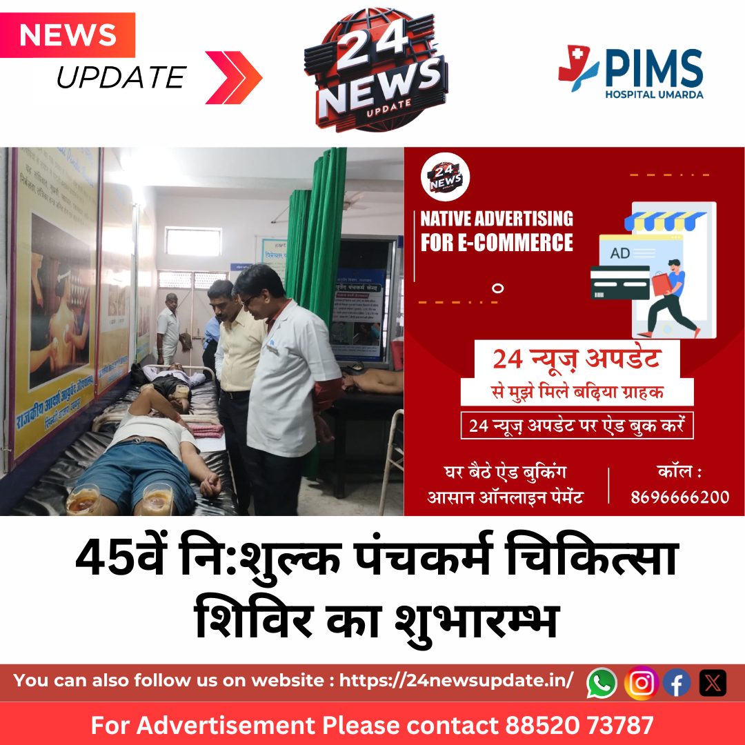 24 News Update उदयपुर. आयुर्वेद विभाग एवं आरोग्य समिति, राजकीय आदर्श आयुर्वेद औषधालय, सिन्धी बाज़ार, उदयपुर के संयुक्त तत्वावधान में वरिष्ठ आयुर्वेद चिकित्साधिकारी डॉ. शोभालाल औदिच्य के निर्देशन में 45वाँ नि:शुल्क पंचकर्म चिकित्सा शिविर आज से 19 सितम्बर 2025 तक आयोजित होगा।