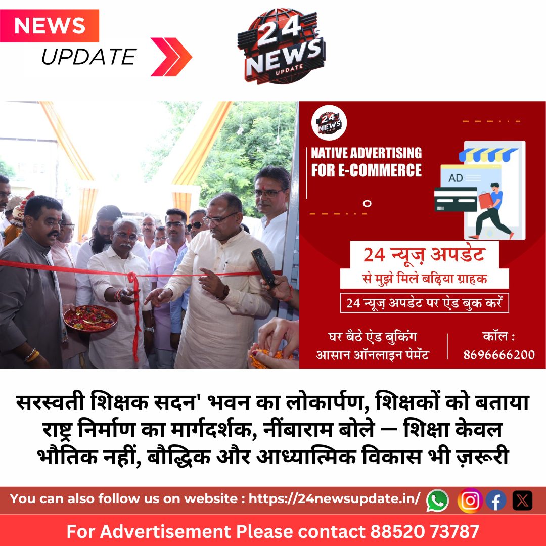 24 News Update उदयपुर, 12 जुलाई। राजस्थान शिक्षक संघ (राष्ट्रीय) उदयपुर के नव निर्मित जिला कार्यालय भवन ‘सरस्वती शिक्षक सदन’ का लोकार्पण समारोह शनिवार को हर्षोल्लास के साथ आयोजित हुआ। इस अवसर पर राष्ट्रीय स्वयंसेवक संघ के क्षेत्रीय प्रचारक नींबाराम ने कहा कि शिक्षा और शिक्षक समाज में अमूलचूल परिवर्तन लाने की क्षमता रखते हैं। शिक्षक संगठन केवल अपने हितों की बात न कर, समाज और राष्ट्र निर्माण में अग्रणी भूमिका निभाएं।
