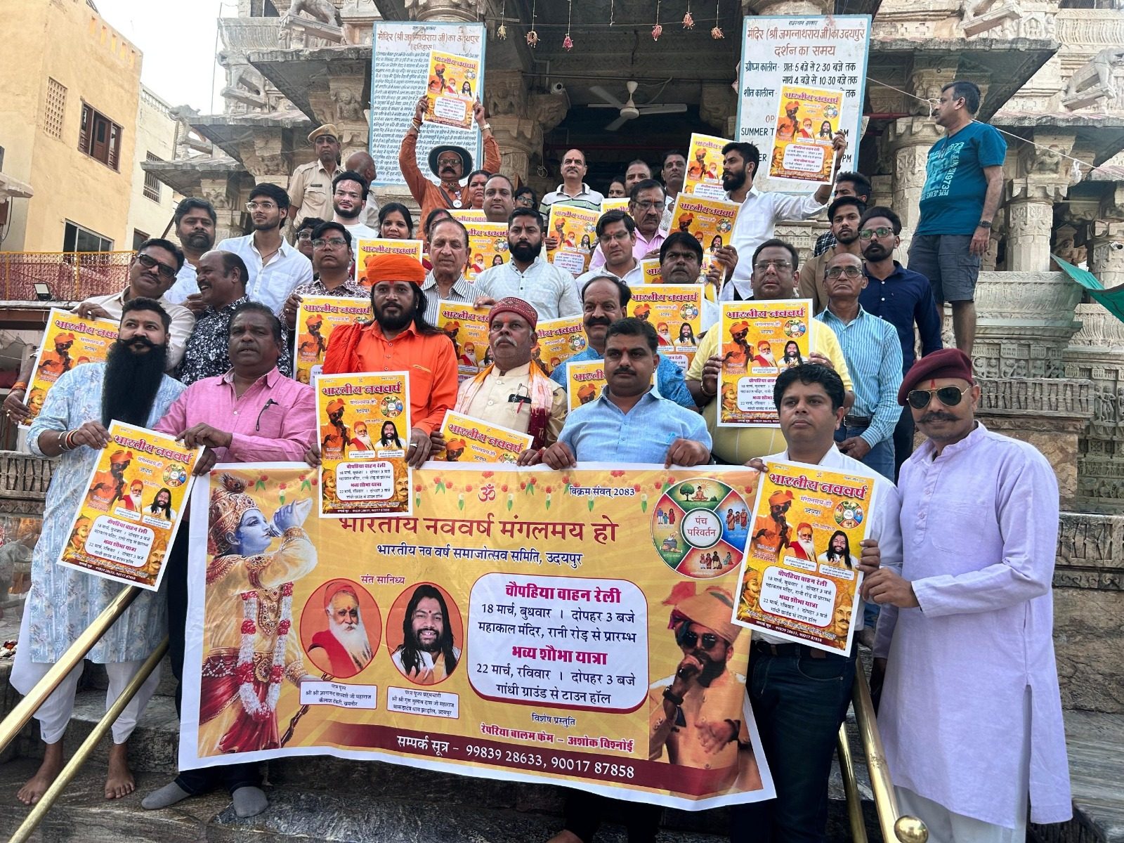 24 News Update उदयपुर। भारतीय नववर्ष समाजोत्सव समिति, उदयपुर के तत्वावधान में चैत्र शुक्ल प्रतिपदा विक्रम संवत 2083 के उपलक्ष्य में शहर में भारतीय नववर्ष उत्सव का भव्य आयोजन किया जाएगा। आयोजन की जानकारी जन-जन तक पहुंचाने के उद्देश्य से शनिवार को जगदीश मंदिर परिसर में पूज्य संतों के करकमलों से कार्यक्रम का पोस्टर विमोचन किया गया।पोस्टर विमोचन के पश्चात समिति पदाधिकारियों ने प्रथम निमंत्रण प्रथम पूज्य बोहरा गणेश जी के मंदिर में अर्पित किया। इसके साथ ही शहर एवं आसपास के गांवों में भारतीय नववर्ष उत्सव के पोस्टर, बैनर तथा भगवा ध्वजों का वितरण भी प्रारंभ कर दिया गया।संयोजक डॉ. परमवीर सिंह दुलावत ने बताया कि महंत इंद्रदेव दास जी, महंत नारायणदास जी वैष्णव, गादीपति डॉ. हेमंत जोशी एवं गादीपति सुशील चित्तौड़ा ने कार्यक्रम के पोस्टर का विमोचन किया। इस अवसर पर संतों ने भारतीय नववर्ष उत्सव को भारतीय संस्कृति और परंपरा से समाज को जोड़ने वाला महत्वपूर्ण पर्व बताते हुए आयोजन को भव्य रूप से मनाने का आशीर्वाद प्रदान किया। 18 मार्च को भगवा वाहन रैलीभारतीय नववर्ष के उपलक्ष्य में 18 मार्च को दोपहर 3 बजे महाकाल मंदिर, रानी रोड से भगवा चार पहिया वाहन रैली निकाली जाएगी। यह रैली शहर के विभिन्न प्रमुख मार्गों से होती हुई टाउन हॉल पहुंचकर संपन्न होगी। 22 मार्च को शोभायात्रा व धर्मसभाइसी प्रकार 22 मार्च को दोपहर 3 बजे भंडारी दर्शक मंडप (गांधी ग्राउंड) से भव्य शोभायात्रा प्रारंभ होगी, जो शहर के विभिन्न मार्गों से होती हुई टाउन हॉल पहुंचेगी। यहां धर्मसभा का आयोजन किया जाएगा, जिसमें संत-महात्माओं का पावन सानिध्य एवं आशीर्वचन प्राप्त होगा। धर्मसभा में परमपूज्य श्री ज्ञानानन्द सरस्वती जी महाराज (कैलाश टेकरी, खमनोर) एवं परमपूज्य ब्रह्मचारी श्री श्री गुरु गुलाबदास जी महाराज (माकड़ादेव धाम, झाड़ोल) का सानिध्य प्राप्त होगा। सांस्कृतिक कार्यक्रम भी होंगे आकर्षण का केंद्रधर्मसभा के पश्चात आयोजित सांस्कृतिक कार्यक्रम में युवाओं के आकर्षण का विशेष केंद्र रेपरिया बालम फेम अशोक विश्नोई की प्रस्तुति रहेगी। वे राजस्थानी लोक संगीत और आधुनिक हिप-हॉप के मिश्रण के लिए जाने जाते हैं। अशोक विश्नोई एक प्रसिद्ध रैपर, गीतकार, संगीतकार एवं निर्माता हैं और उनके गीत युवा वर्ग में विशेष रूप से लोकप्रिय हैं। 19-20 मार्च को धार्मिक आयोजनडॉ. दुलावत ने बताया कि 19 एवं 20 मार्च को शहर के विभिन्न नगर खंडों एवं बस्तियों के मंदिरों में महाआरती, गंगा आरती तथा हनुमान चालीसा पाठ सहित विभिन्न धार्मिक कार्यक्रम आयोजित किए जाएंगे। बैठकों का दौर जारीभारतीय नववर्ष उत्सव को सफल बनाने के लिए शहर के विभिन्न क्षेत्रों में लगातार बैठकें आयोजित 