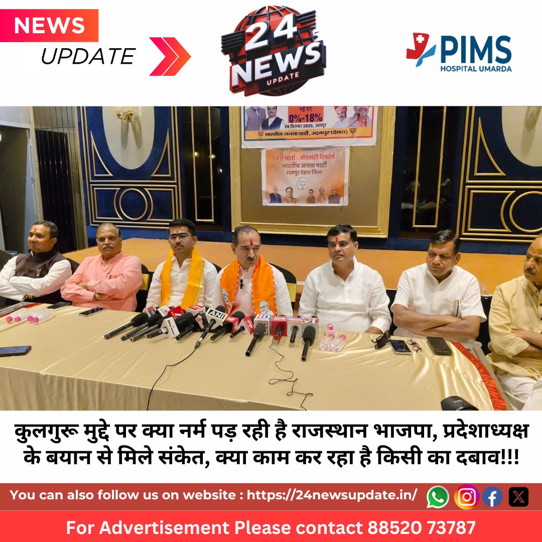 24 न्यूज अपडेट, उदयपुर। आज भाजपा के प्रदेशाध्यक्ष मदन राठौड़ उदयपुर पहुंचे व पत्रकार वार्ता में जब उनसे मोहनलाल सुखाड़िया विश्वविद्यालय की कुलगुरू के बारे में पूछा गया तो उनके जवाब से कई संकेत मिले। ऐसा लगा कि कहीं ना कहीं भाजपा के शीर्ष नेतृत्व पर कोई दबाव काम कर रहा है। निचले स्तर पर जहां पर सभी जन प्रतिनिधियों व पार्टी की इकाई ने वीसी को हटाने की पुरजोर वकालत की है तो पार्टी के प्रदेशाध्यक्ष के बोल से साफ हो रहा है अब भी कहीं ना कहीं कोई दबाव काम कर रहा है। पार्टी जांच कमेटी के नाम पर गुंजाइश देख रही है। इस बारे में कहां से क्या दबाव और संदेश आ रहे हैं यह तो आने वाले दिनों में ही साफ हो पाएगा मगर प्रदेशाध्यक्ष के बयान से भाजपा के सॉफ्ट होने के संकेत साफ मिल गए। राठौड़ बोले कि – उन्होंने गलती की ऐसे किसी भी बयान से बचना चाहिए, जिससे किसी को ठेस पहुंचे। ऐसा वक्तव्य देना अपराध है। बिना इतिहास को पढ़े किसी की प्रशंसा करना और आलोचना नहीं करनी चाहिए। ये तो उन्होंने गलत किया है। उन्होंने माफी मांगी है मतलब अपराध बोध तो है।