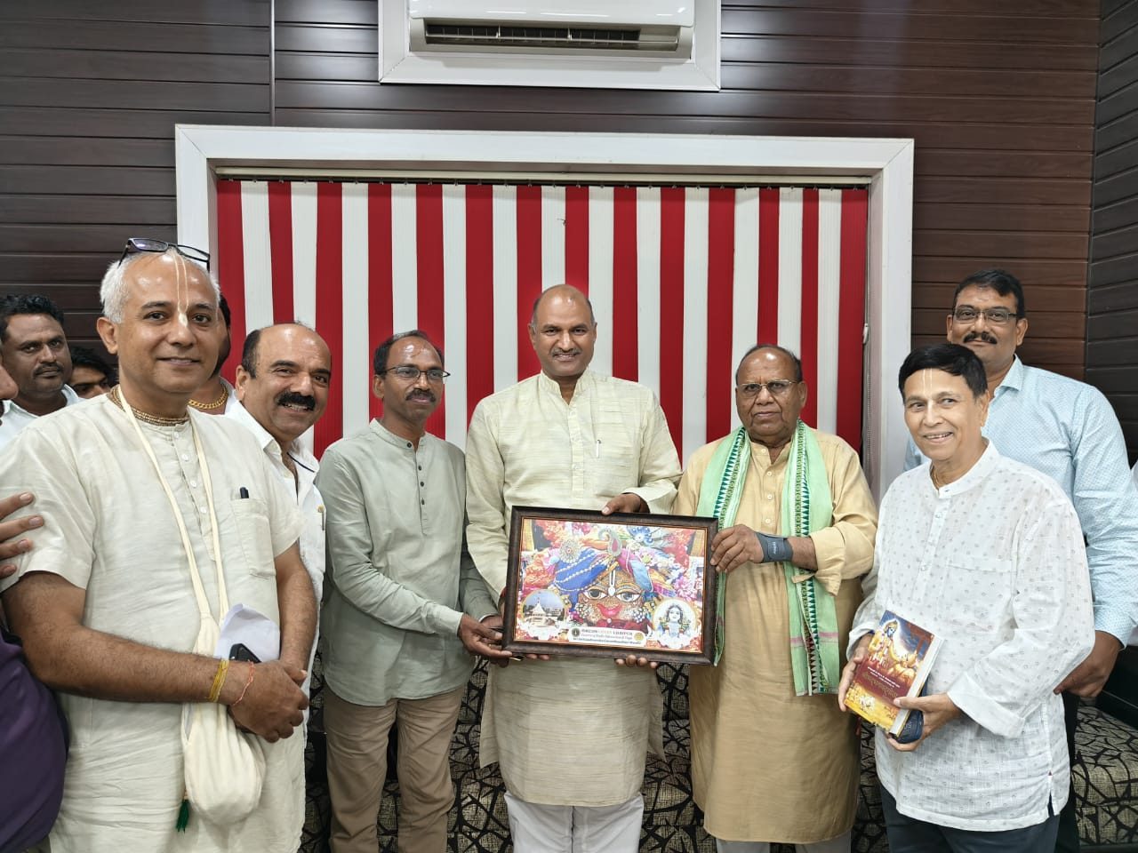 24 News Update उदयपुर, इस्काॅन कोवे के चिरवा मोहनपुरा मे विशाल स्तर पर निर्माणाधीन गन्धर्विका गोवर्धनधारी मन्दिर की ओर से इस बार जन्माष्टमी के अगले दिन नन्दोत्सव बड़ी धूमधाम से मनाने का निर्णय लिया है। ओकेजन गार्डन 100 फिट रोड, शोभागपुरा मे 17 अगस्त को सायंकाल होनेवाले नन्दोत्सव मे कीर्तन कथा अभिषेक गोवर्धन परिक्रमा तथा सांस्कृतिक कार्यक्रम होना प्रस्तावित है।प्रोजेक्ट डाइरेक्टर मदन गोविंद प्रभु ने बताया कि गणमान्य जनो को निमंत्रण देने के क्रम मे कमेटी चेयरमैन रवि बर्मन के नेतृत्व मे चितोडगढ लोकसभा सासंद चन्द्र प्रकाश जोशी, उदयपुर सासंद मन्नालाल रावत तथा राज्य सभा सासंद चुन्नीलाल गरासिया से भेंट कर मुख्य अतिथि एंव विशिष्ट अतिथि के रूप मे निमंत्रित किया है। जिसमे सभी ने सहर्ष आने की स्वीकृती प्रदान की है। इस अवसर पर सेक्रेट्री राहुल बर्मन प्रभु ओम कुमावत प्रभु एंव भगवती लाल मेनारिया प्रभु आदि भी उपस्थित रहे। मदन गोविंद प्रभु ने सभी सांसदो को गन्धर्विका गोवर्धन धारी भगवान की सुन्दर तस्वीर व भगवद्गीता भेंट की।