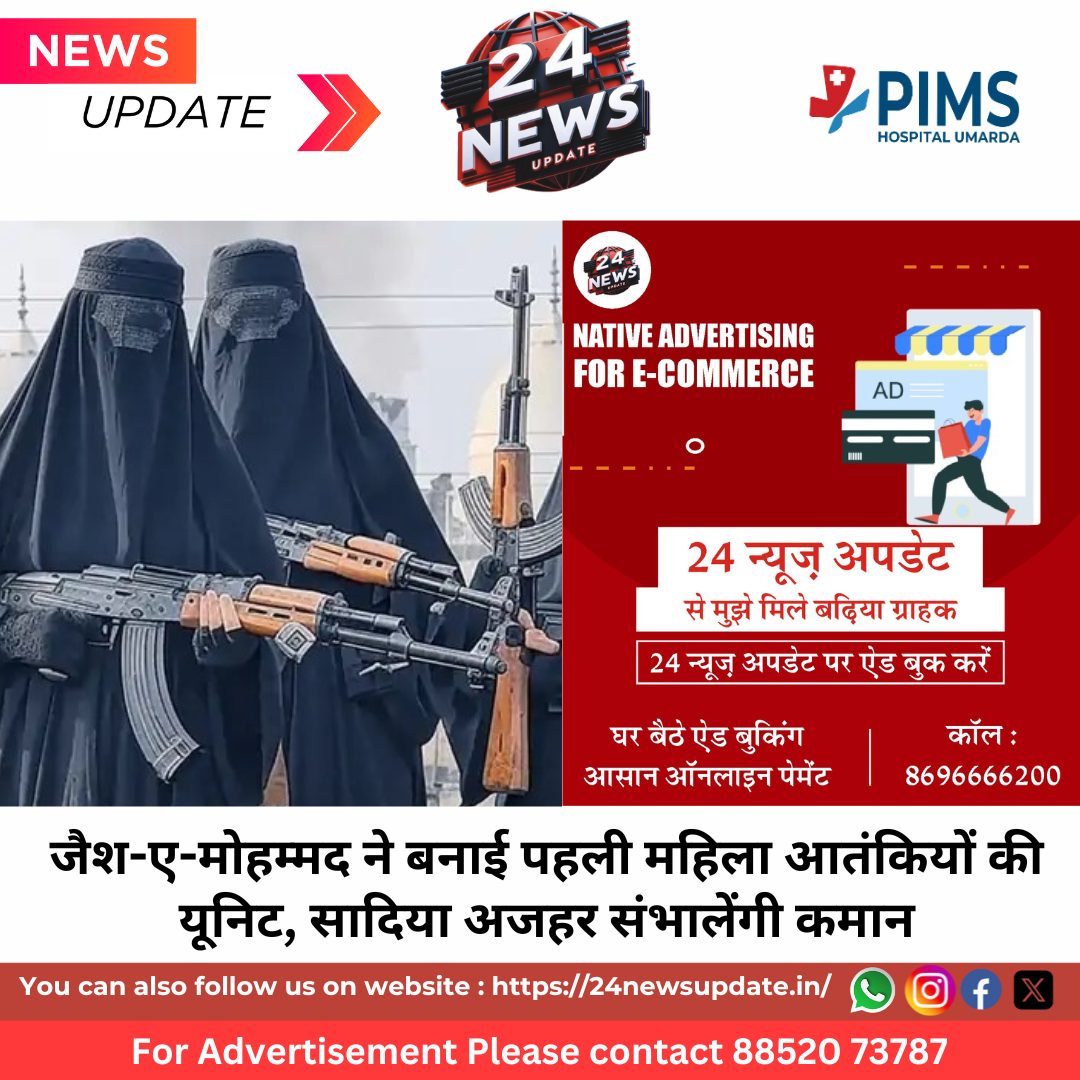 24 News Update नई दिल्ली। पाकिस्तान स्थित आतंकी संगठन जैश-ए-मोहम्मद (JeM) ने पहली बार महिला आतंकियों की अलग यूनिट बनाई है, जिसका नाम ‘जमात-उल-मोमिनात’ रखा गया है। मीडिया रिपोर्ट्स के मुताबिक, इस नई यूनिट में भर्ती प्रक्रिया 8 अक्टूबर से पाकिस्तान के बहावलपुर स्थित मरकज उस्मान-ओ-अली में शुरू हो चुकी है।