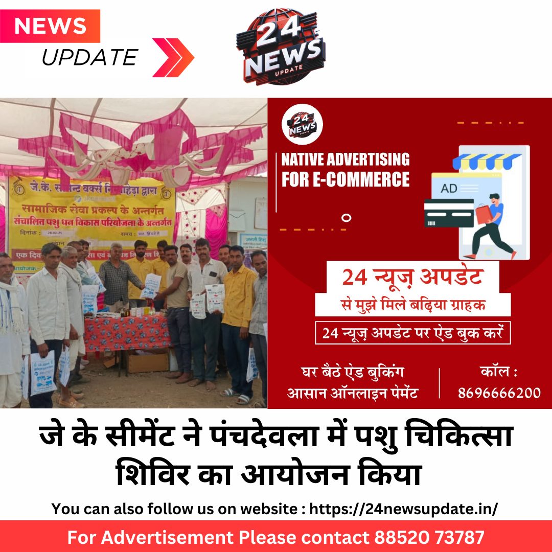 24 न्यूज अपडेट. निंबाहेड़ा, 28 फरवरी 2025: आज पंचदेवला गांव में एकदिवसीय निःशुल्क पशु चिकित्सा शिविर का सफलतापूर्वक आयोजन किया गया। यह शिविर जे.के. सीमेंट निंबाहेड़ा की सामाजिक सेवा उत्तरदायित्व (CSR) के तहत ग्रामीण विकास कार्यक्रमों का एक हिस्सा हैं। इसका उद्देश्य पशुपालकों के पशुओं की स्वास्थ्य समस्याओं का समाधान करना और निशुल्क दवाइयां उपलब्ध कराना था।