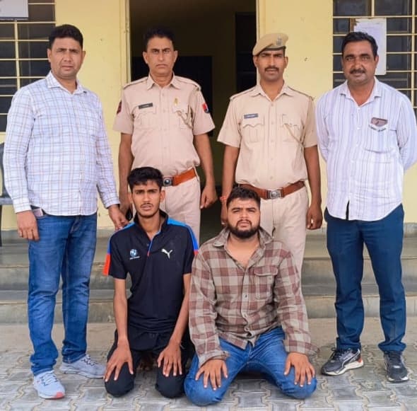 24 News Update जयपुर । सीकर डीएसटी व थाना खण्डेला पुलिस ने संयुक्त कार्रवाई कर होटल कर्मियों से मारपीट, तोड़फोड़ कर रूपये छीनने व धमकी देने के मामले में करीब तीन महीनों से वांछित दो आरोपियों मनोज मंगावा पुत्र भोलाराम जाट (24) निवासी रलावता थाना खण्डेला एवं अमित मीणा पुत्र इन्द्राज सिंह (20) निवासी दुल्हेपुरा थाना खण्डेला को गिरफ्तार किया है। आरोपी अमित मीणा दुष्कर्म के मामले में थाना मानसरोवर जयपुर में वांछित है, जबकि मनोज मंगावा लूट के मामले में थाना उधोगनगर से 5000/- रूपये का वांछित ईनामी बदमाश है।