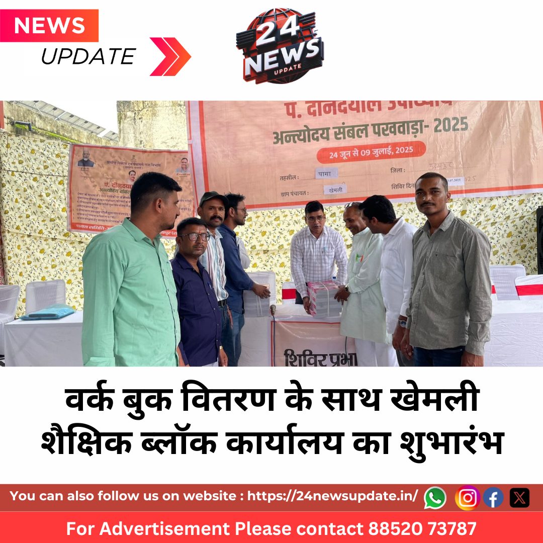 24 News Update मावली। राज्य सरकार द्वारा स्वीकृत नवगठित शैक्षिक ब्लॉक खेमली का गुरुवार को शुभारंभ किया गया। इस अवसर पर वर्क बुक वितरण कार्यक्रम भी आयोजित हुआ, जिसमें खेमली ब्लॉक के विद्यार्थियों को अध्ययन सामग्री सौंपी गई। राज्य सरकार द्वारा खेमली को शैक्षिक ब्लॉक का दर्जा दिए जाने के बाद, मुख्य ब्लॉक शिक्षा अधिकारी (सीबीईओ), समग्र शिक्षा, खेमली का अतिरिक्त प्रभार प्रमोद कुमार सुथार को सौंपा गया है।
